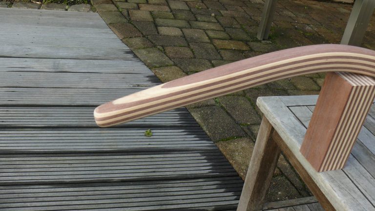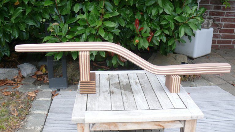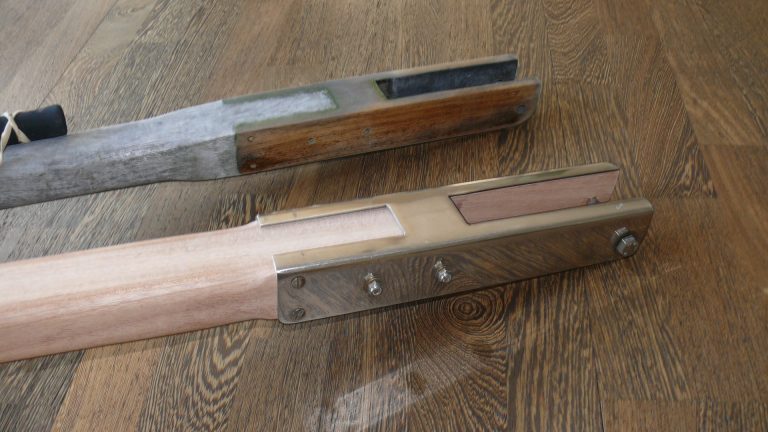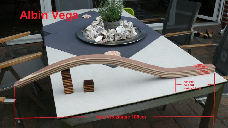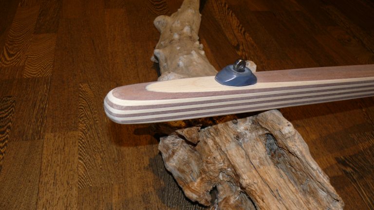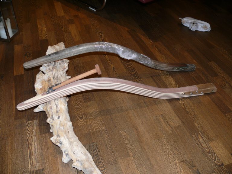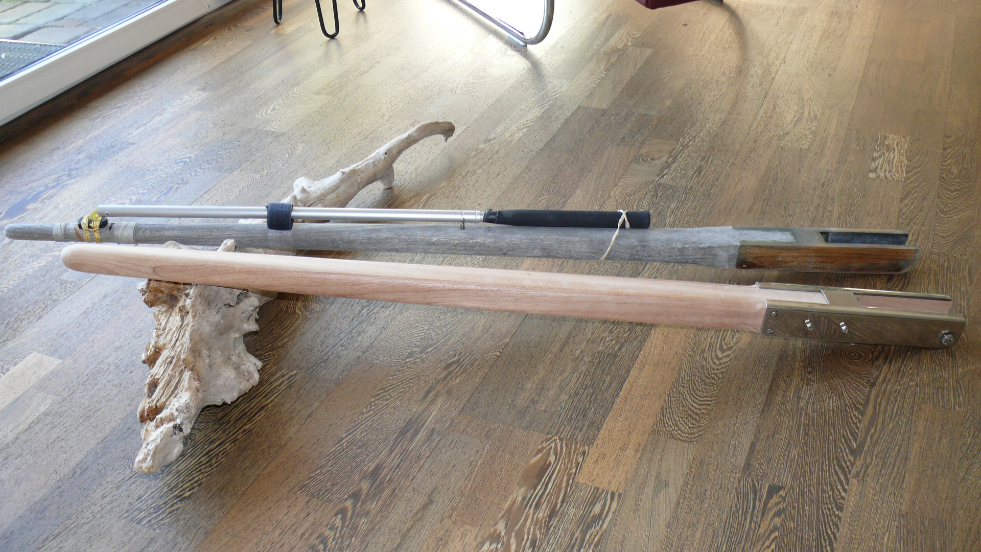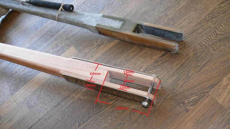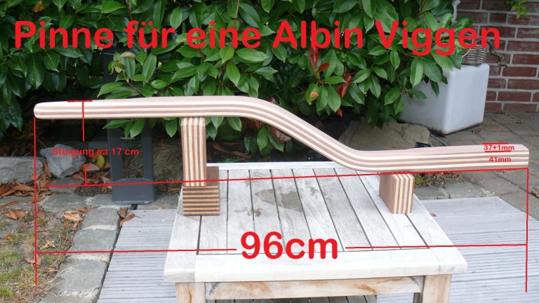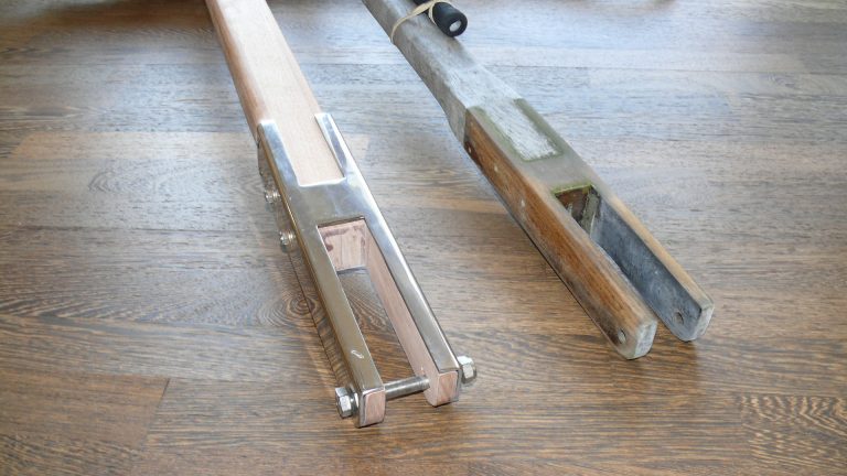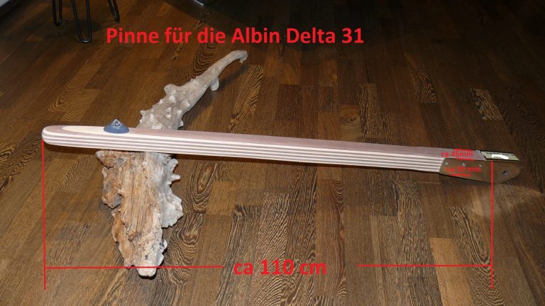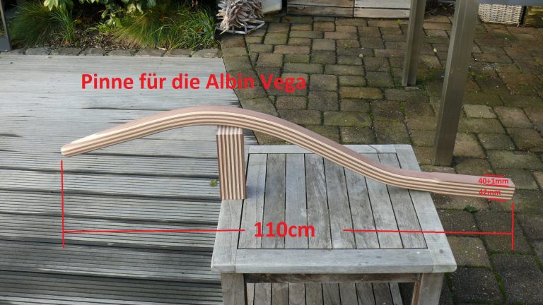 Die „Serienpinne“ der Albin Vega ist gerade gebaut. Durch den Neigungswinkel der Ruderwelle von ca 30 Grad steht die Pinne beim Steuern deswegen sehr stark nach oben. Deswegen hat ein Albin Vega Eigner und ich diese Sichelform entwickelt. Das gerade Unterteil ist so lang, dass die Pinne noch hochklappbar ist. Durch die obere Sichelform steht der Griff deutlich weniger nach oben, schon fast in der Waagerechten. Das ist deutlich angenehmer beim Steuern.