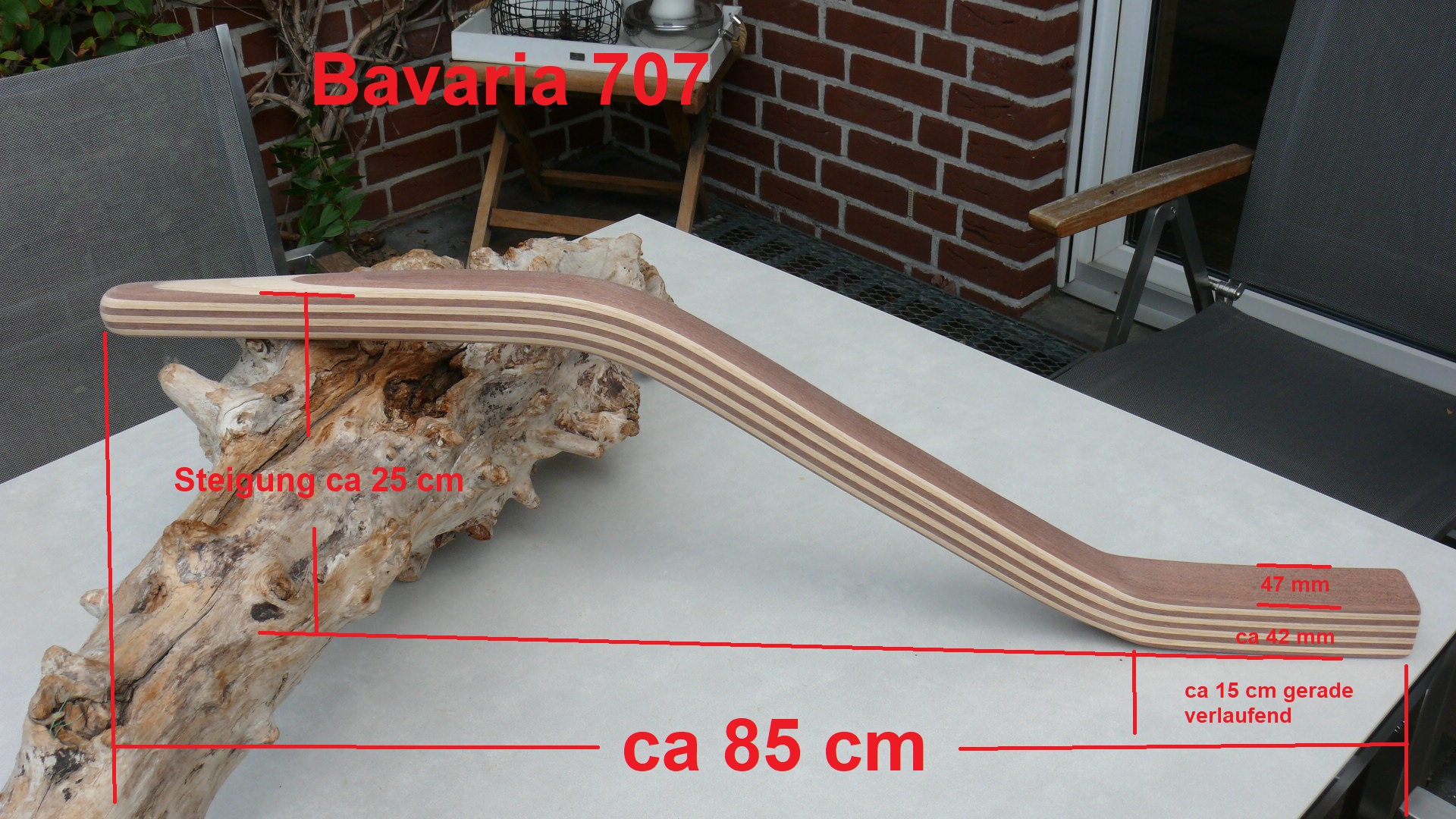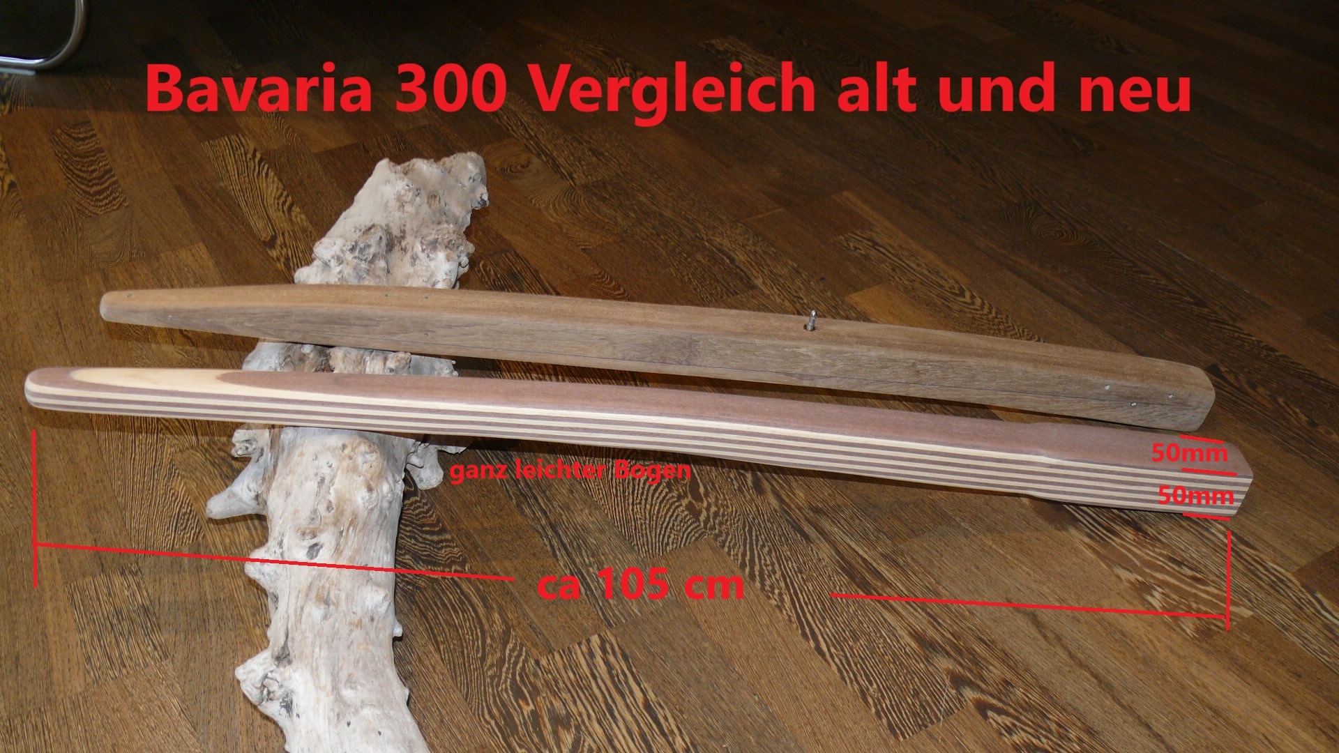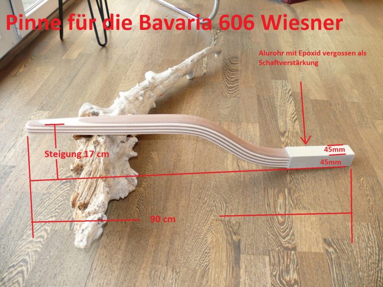 Ein viel gebauter Klassiker von Bavaria. Ich habe für diesen Bootstyp in der Vergangenheit zwei Versionen gebaut: Mit langem S-Schlag oder mit kurzem S-Schlaf samt Schaftverstärkung mit einem aufgeschobenem und mit Epoxid vergossenen Aluvierkantrohr.