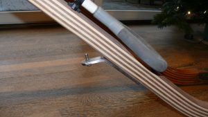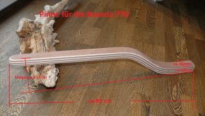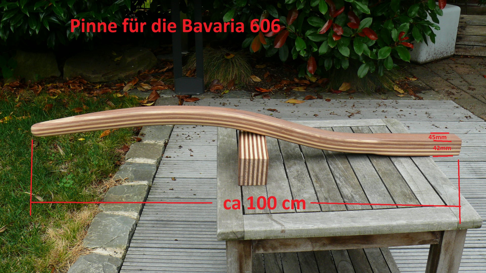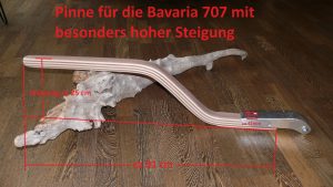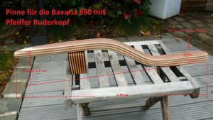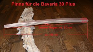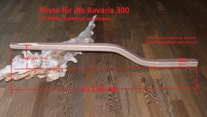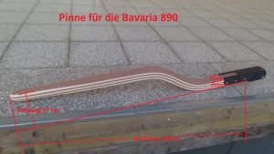 Hinweis zur Bavaria 320: Die Serienpinne der Bavaria 320 ist gerade bzw. ganz leicht gebogen. Der Segler, der diese Pinne bestellt hat, wollte mehr Beinfreiheit, weil die gerade Pinne immer gegen das Knie gestossen ist. Gleichzeitig musste aber auch darauf geachtet werden, dass der Pin für den Pinnenpilot wieder an passende Stelle kommt. Deswegen ist der untere gerade Bereich relativ lang gehalten. In Zukunft wird der Pin für den Pinnenpilot auf der OBerseite der Pinne montiert, so dass sich der Pinnenpilot in der waagerechten Position befindet und besser steuert.