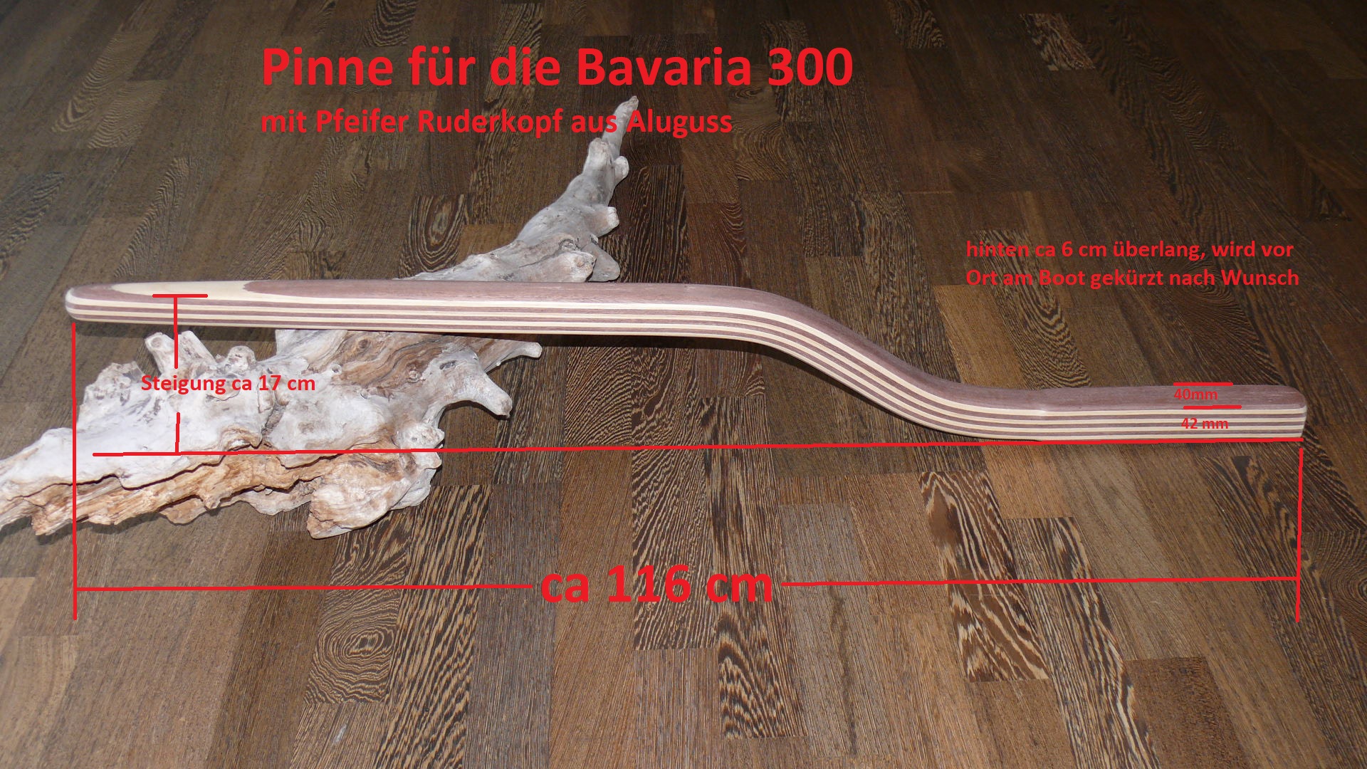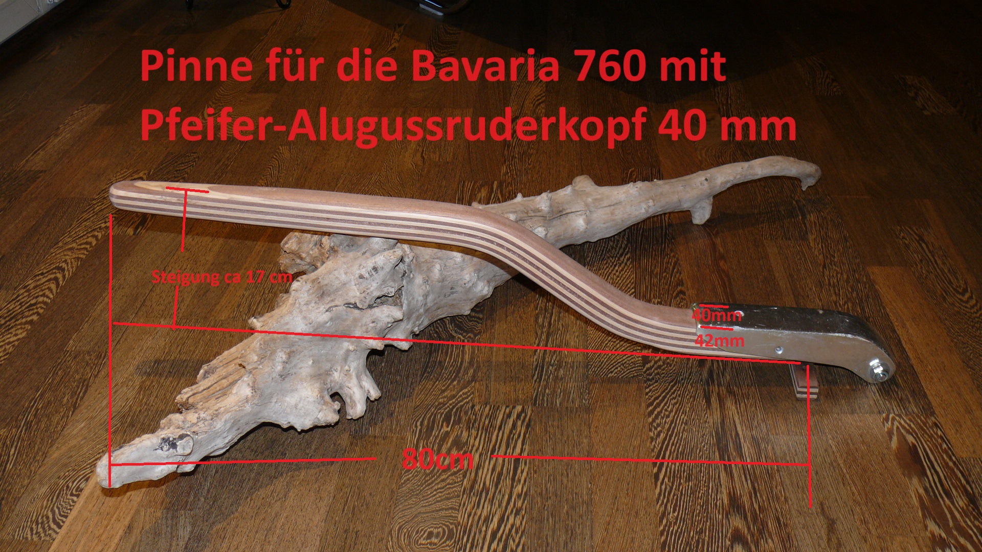 Die Pinne für die Bavaria 760 habe ich schon oft gebaut, hier wurden meistens der Pfeifer Ruderkopf mit 40mm Breite verbaut.
