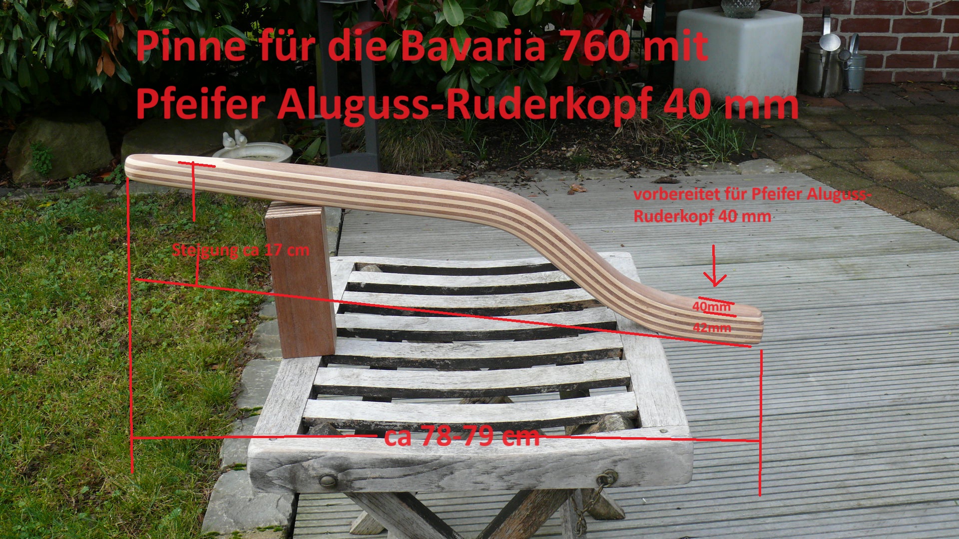 Die Pinne für die Bavaria 770 habe ich schon oft gebaut, hier wurden meistens der Pfeifer Ruderkopf mit 40mm Breite verbaut.