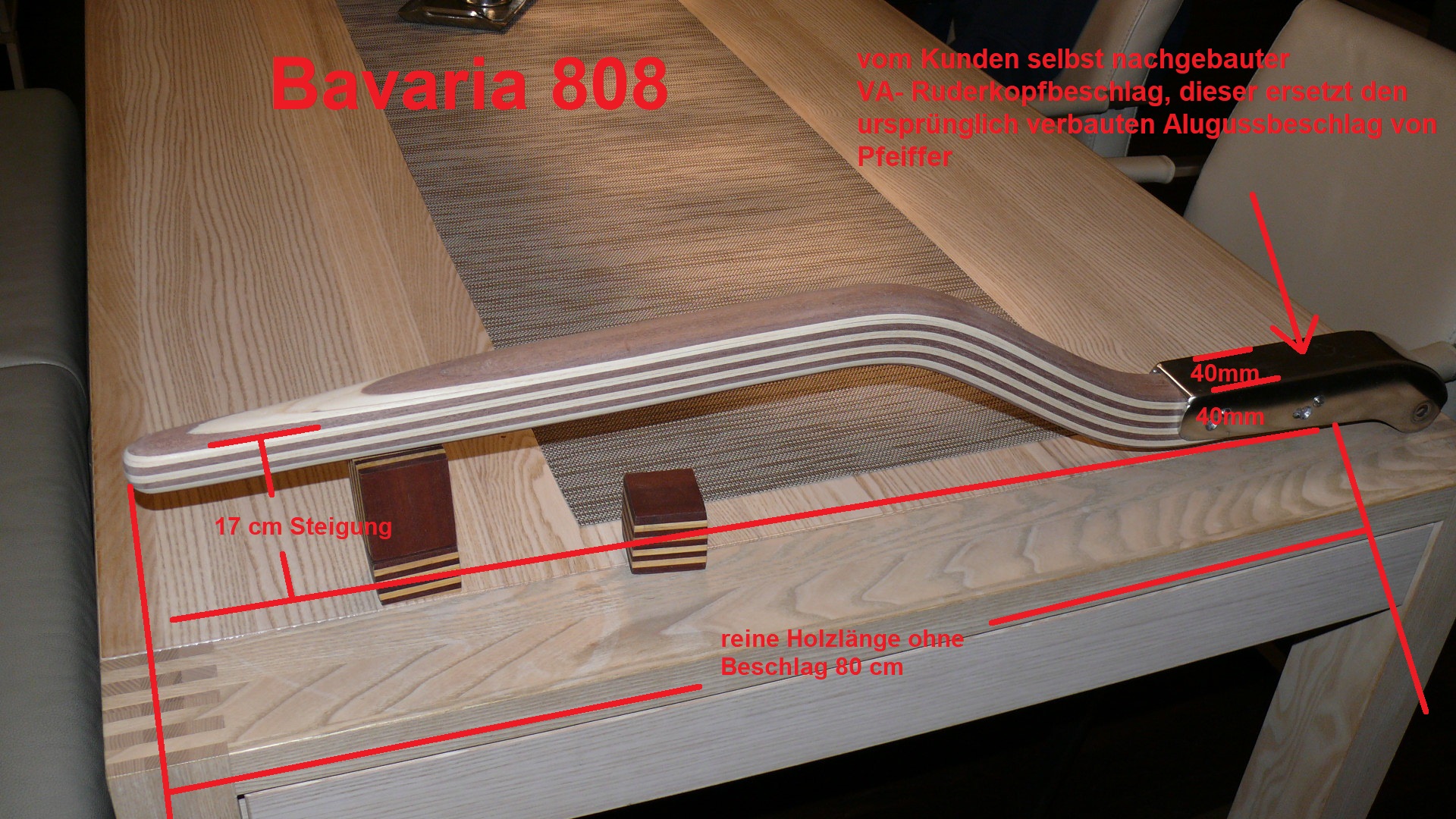 Die Pinne für die Bavaria 808 habe ich schon oft gebaut, hier wurden meistens der Pfeifer Ruderkopf mit 40mm Breite verbaut.