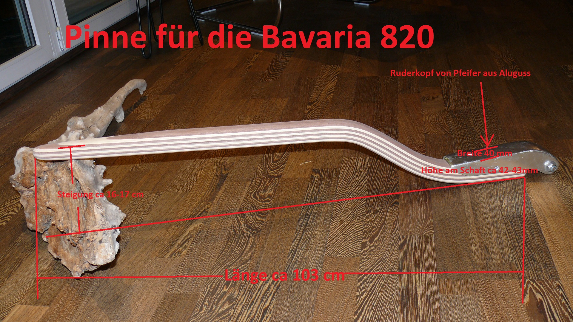 Die Pinne für die Bavaria 820 habe ich schon oft gebaut, hier wurden meistens der Pfeifer Ruderkopf mit 40mm Breite verbaut.