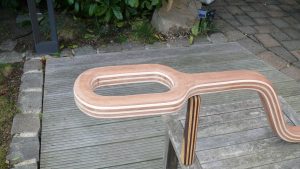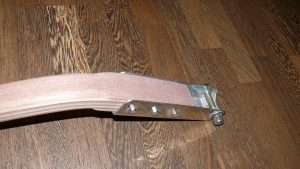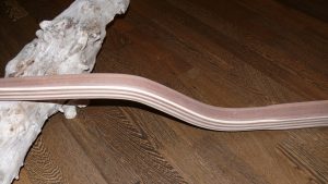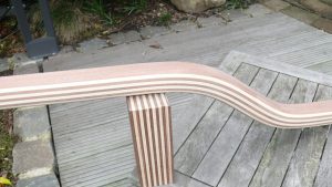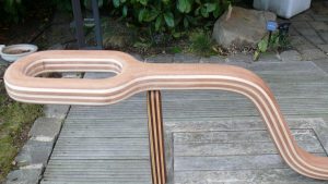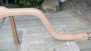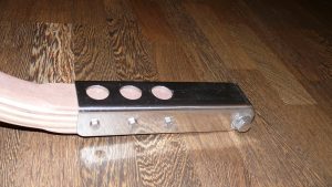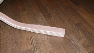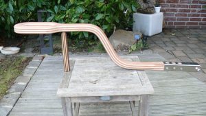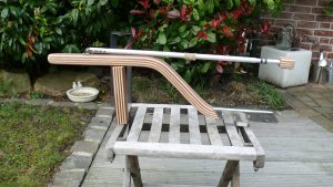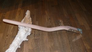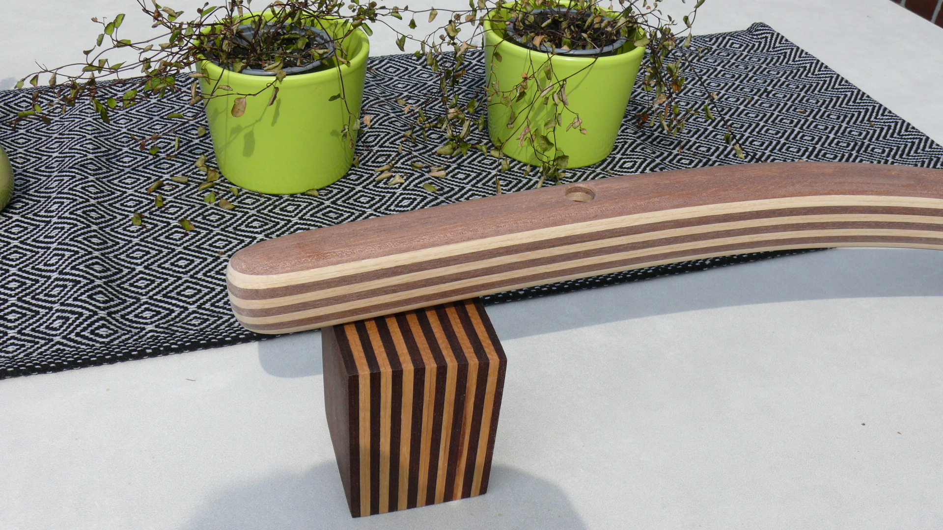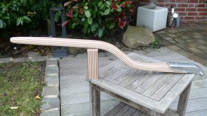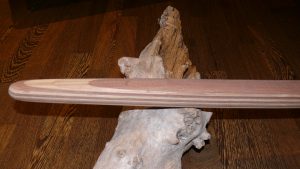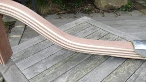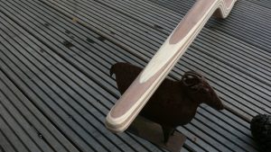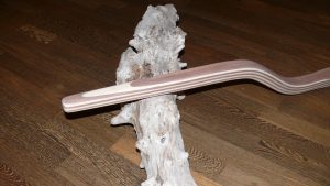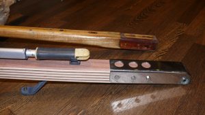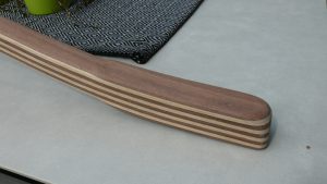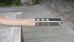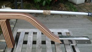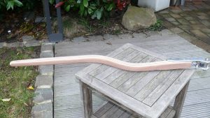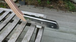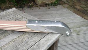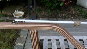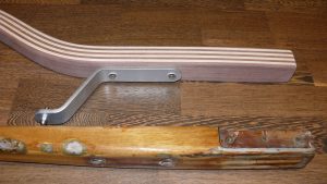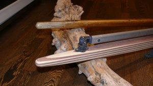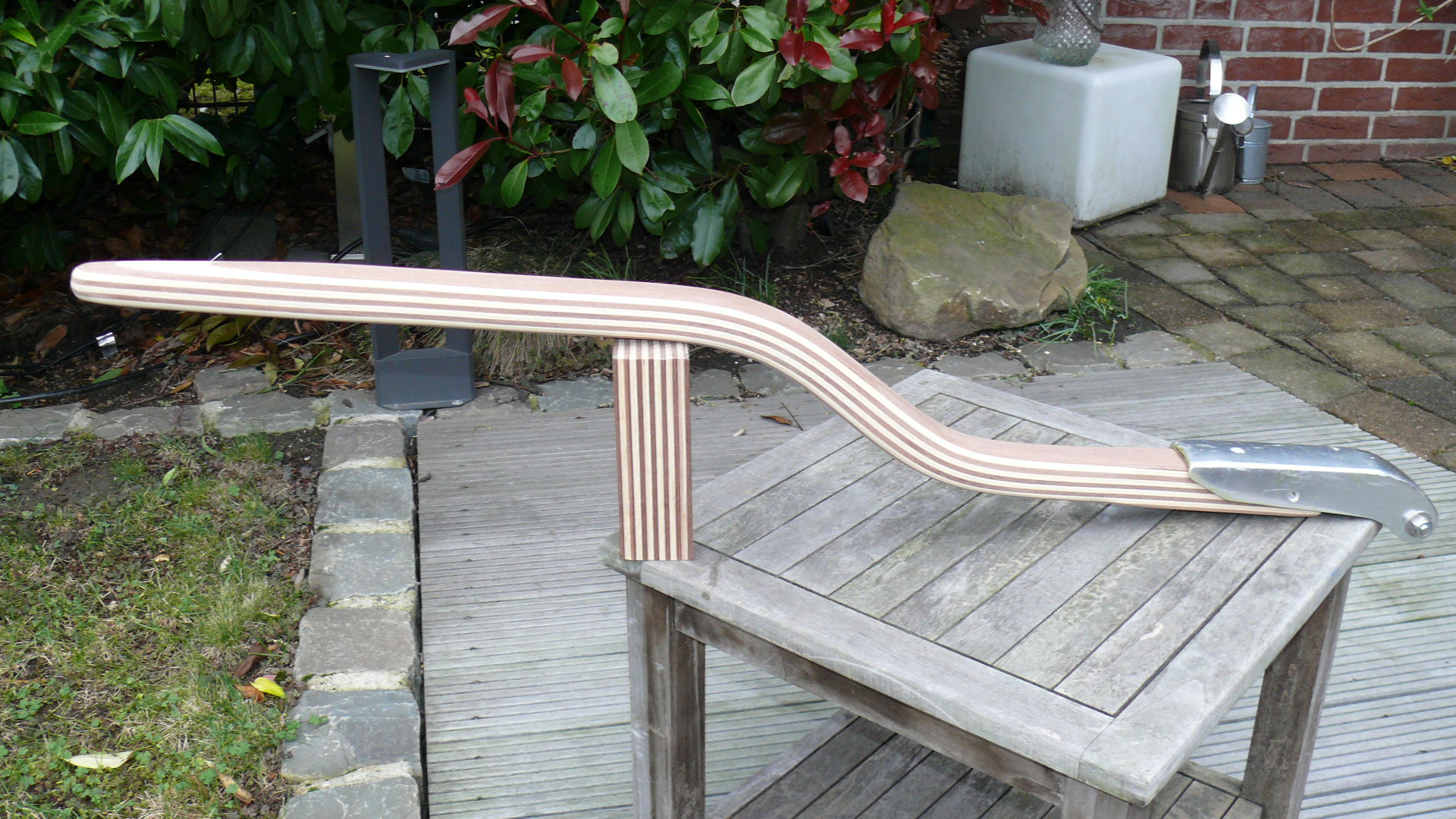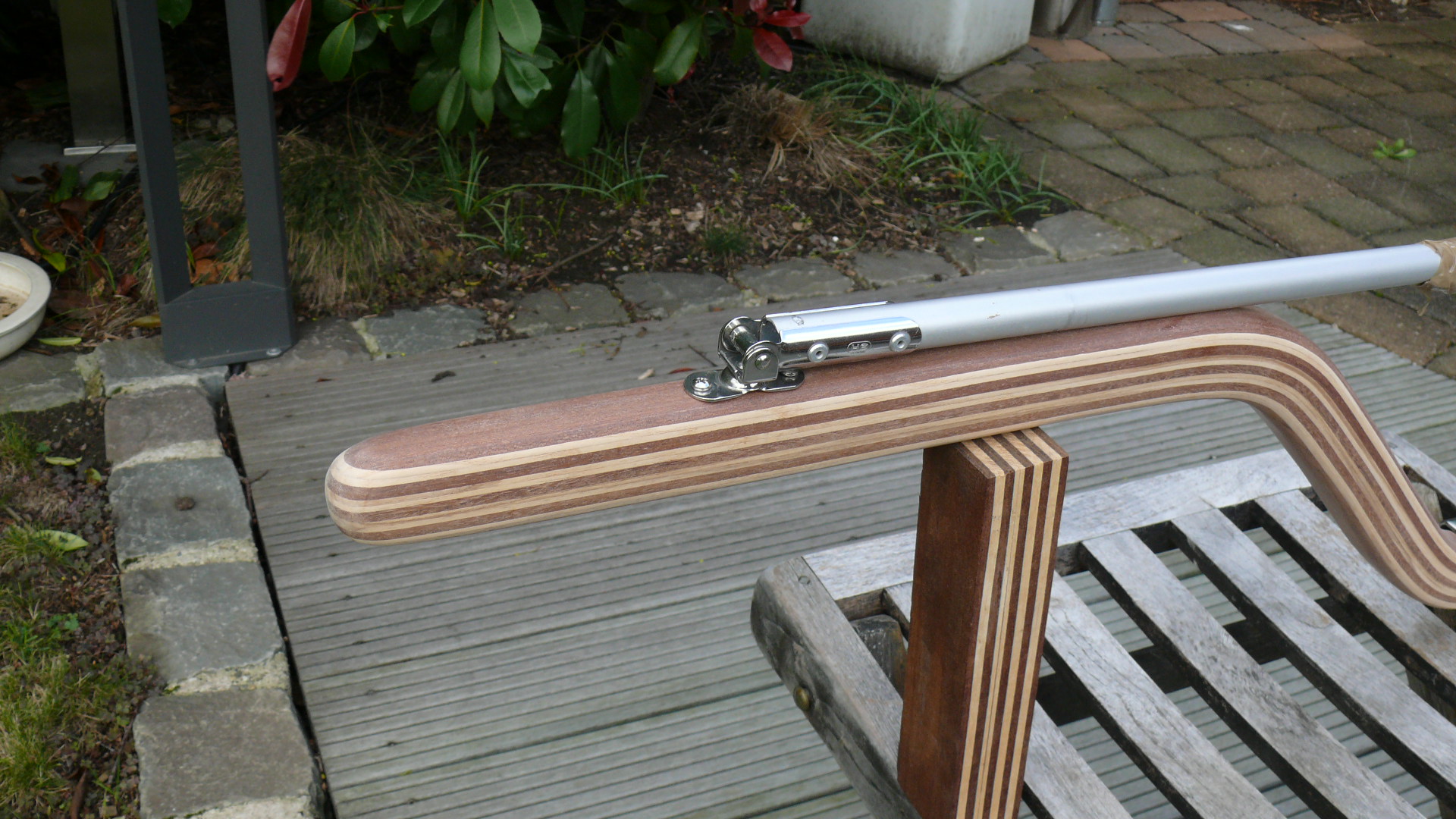 Genaues Hinsehen für ein nettes Detail ist hier gewünscht: Bei dieser Pinne hat mir der Eigner seinen Ruderkopf und seinen alten, vorhandenen Pinnenausleger zugesendet. Beides habe ich an die neue Pinne montiert. Da der vorhandene Griff am Pinnenausleger, eine Korkkugel, am Ende war, habe ich stattdessen aus einem Abschnitt einer Pinne einen neuen „Griffwürfel“ gefertigt und mit Epoxid aufgeklebt.