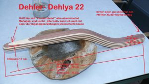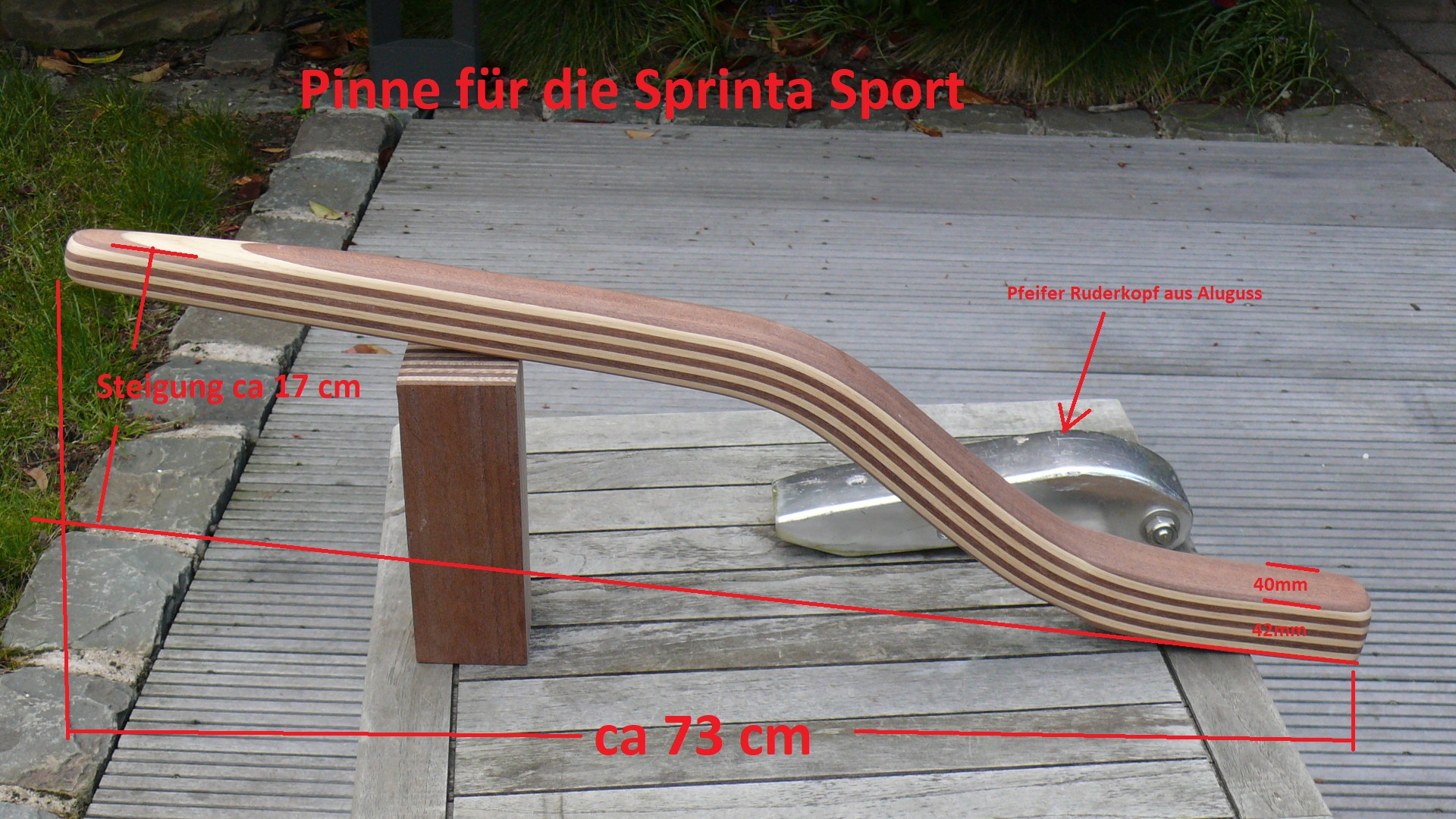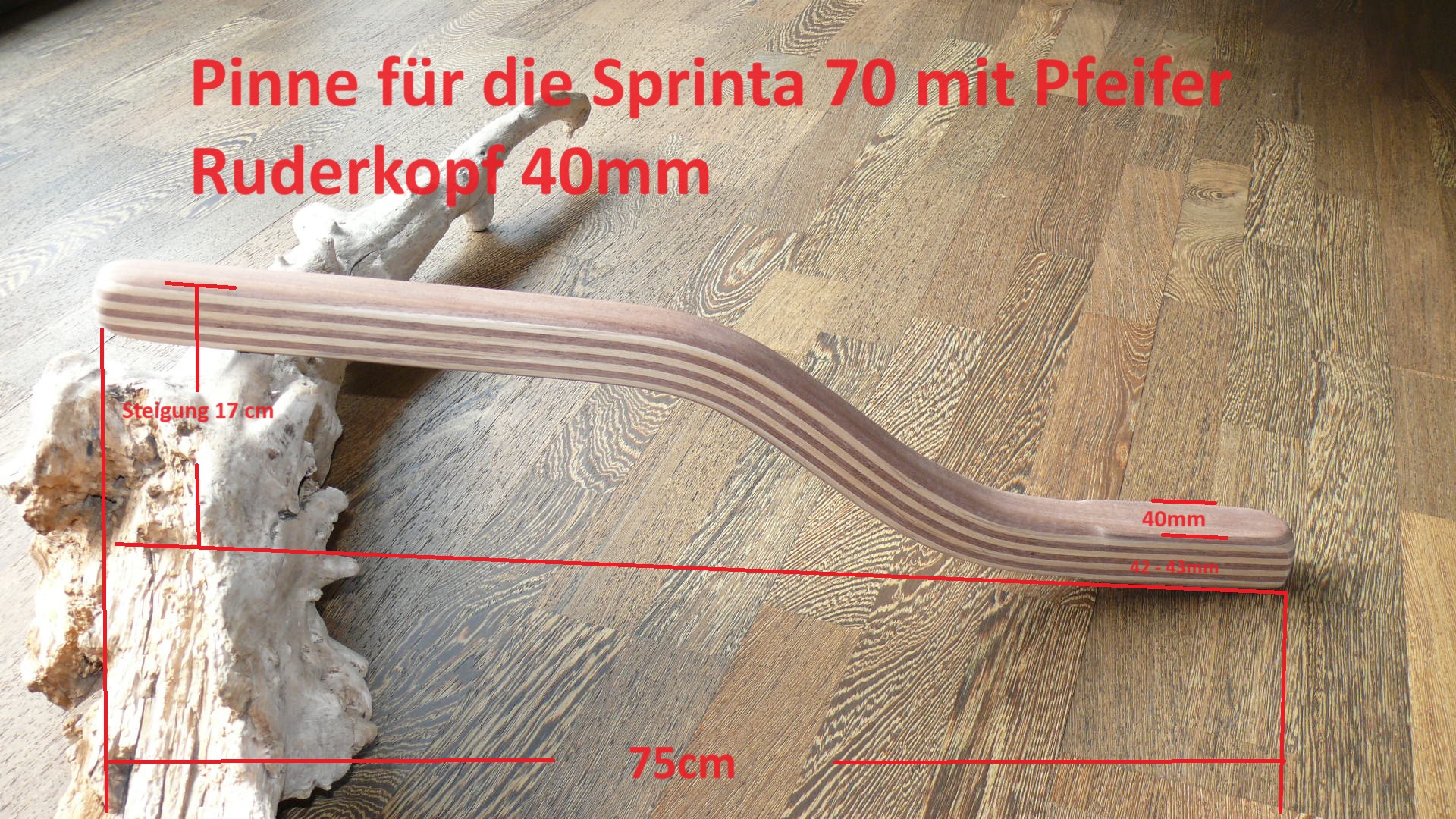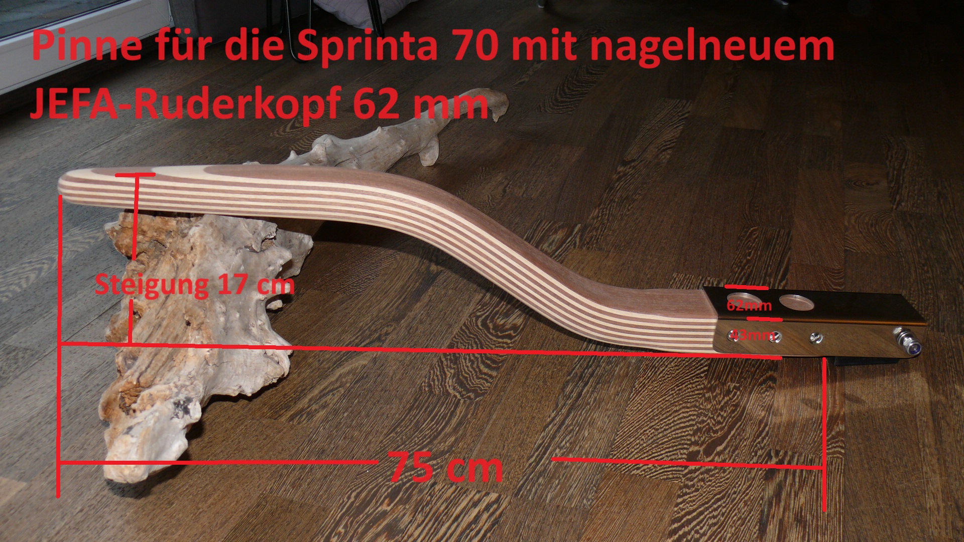 Bei der Sprinta-Serie wurde, wie bei der Dehlya 22 und 25, der Pfeifer-Aluguss-Ruderkopf verbaut. Dieser ist exakt 40 mm breit zwischen den Flanken. Dieser Ruderkopf liegt in meiner Werkstatt als „Anpassmuster“ bereit.