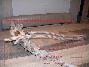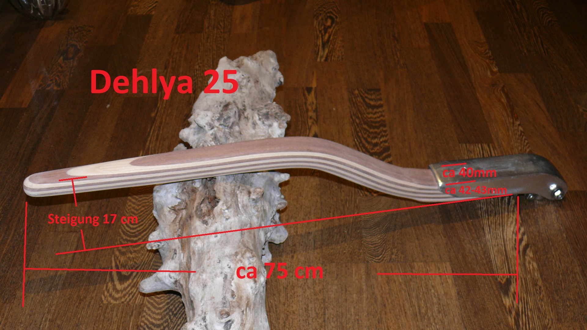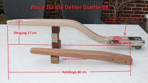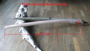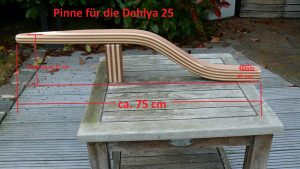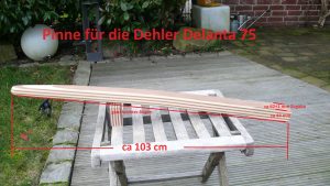 Die Dehlya 22 Pinne baue ich standardmässig 70 cm lang, die Dehlya 25 Pinne standardmässig 75 cm lang
