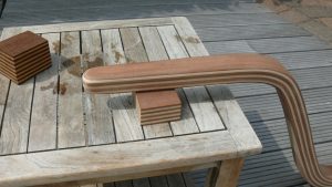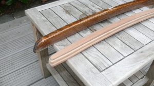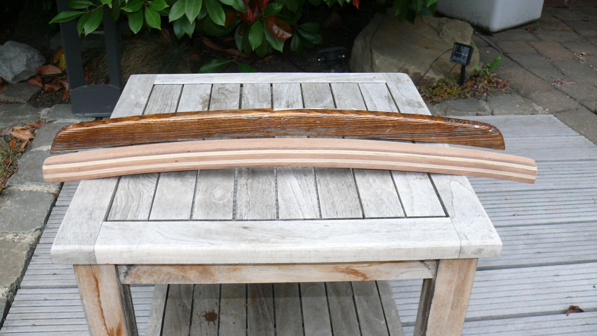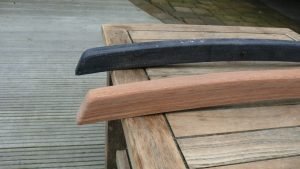 Wahlweise fertige ich auch für die Dehler 22 den Griff vom Schiebeluk lamelliert aus Mahagoni oder wahlweise auch zweifarbig aus Mahagoni mit Esche im Wechsel, siehe die letzten Bilder weiter unten.