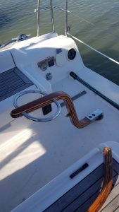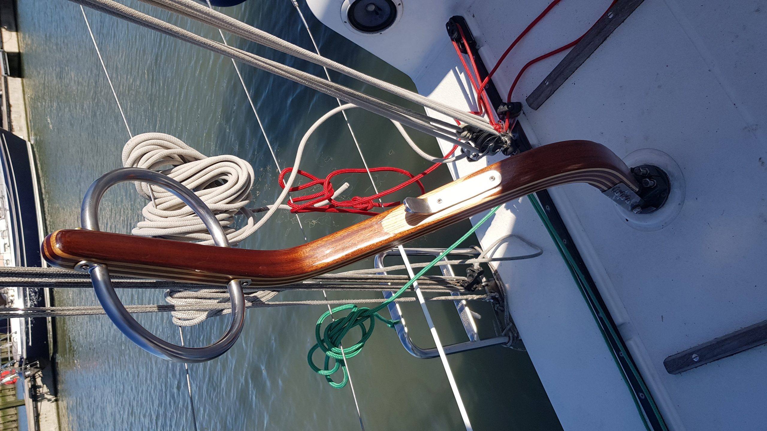 Hinweis: die ersten 3 Bilder zeigen die Standardform der Dehler 34 Pinne, die drei weiteren Bilder zeigen eine „Sonderform“ mit kurzem S-Schlag und ca 17 cm Steigung. Diese Sonderform passt auch sehr gut zur Dehler 34 und hat den Vorteil, dass der Griffbereich über eine lange Strecke gerade verläuft und deswegen der der Pinnenausleger sehr gut abgelegt werden kann. Beide Versionen sind preisgleich.