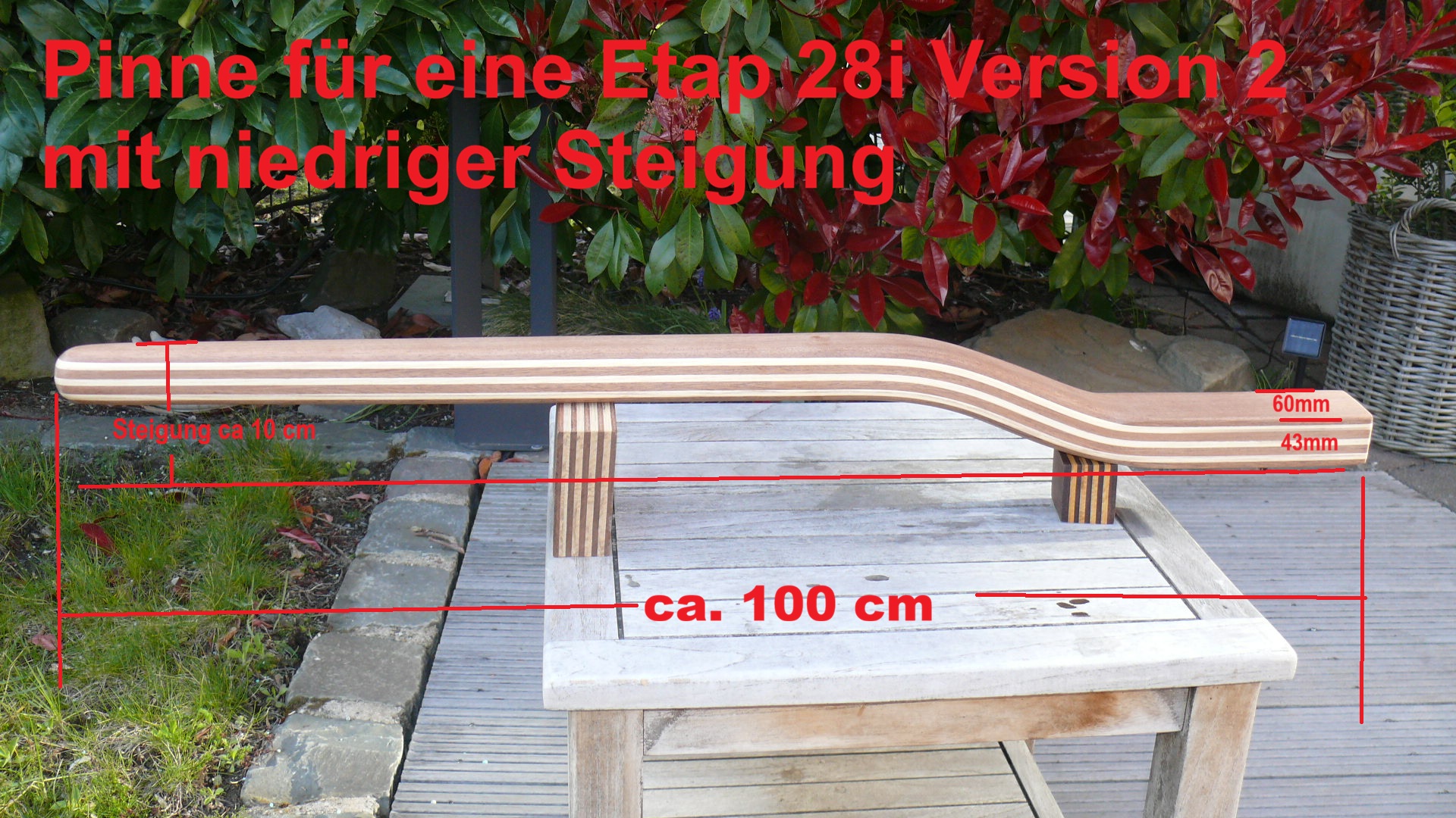 2: Version 2 entspricht der Original-Etap 28-S Form. Hier ist der Rücken insgesamt „gebogener“. Nachteil dieser Variante: Ein Pinnenausleger kann schlechter abgelegt werden. Deswegen empfehle ich Version 1 für die Etap 28S.