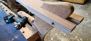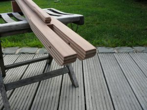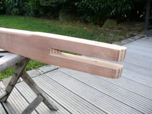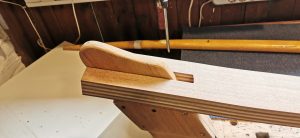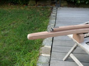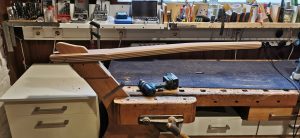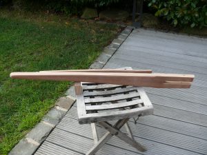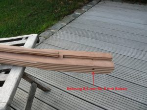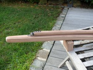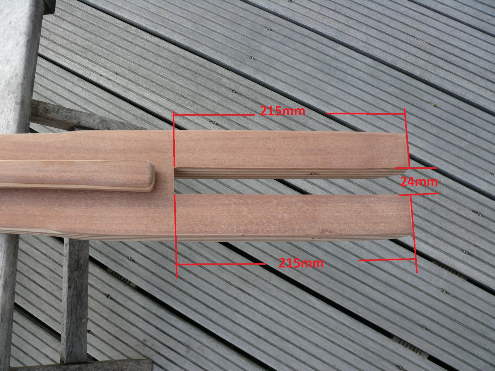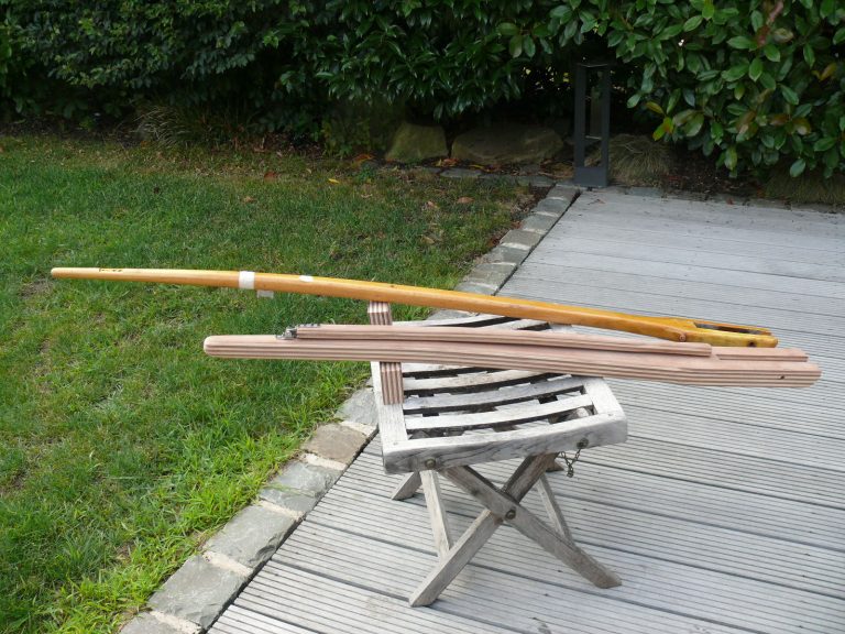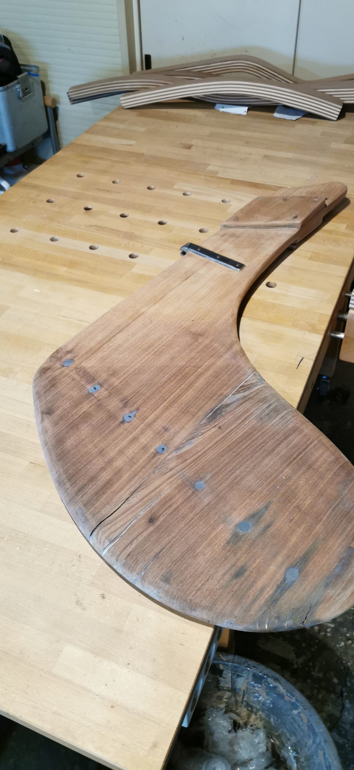 Hier ein paar Bilder von der Sanierung des Ruderblattes einer Hansa Jolle. Das Ruderblatt war durch eindringendes Wasser fast duchgängig aufgespalten. Ich habe das Blatt sauber in zwei Hälften aufgetrennt, die Kanten abgerichtet, neue Dübel angefertigt und in die Stosskanten eingelassen, und dann die beiden Teile mit Epoxidharz neu verklebt. Anschließend wurde alles sauber geschliffen. Es folgte eine Beschichtung mit 2 Lagen feiner Glasseide zur zusätzlichen Stablisierung der Flächen, die fast unsichtbar sind. Nach zwei weiteren Beschichtungen mit klarem UV-stabilisierten Epoxid der Fa. RG-Fasertechnik und finalem Feinschliff war das Blatt fertig fürs Lackieren.