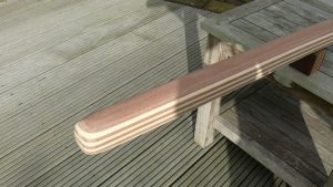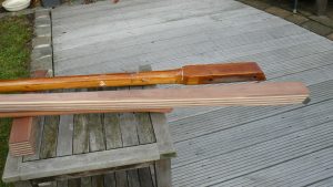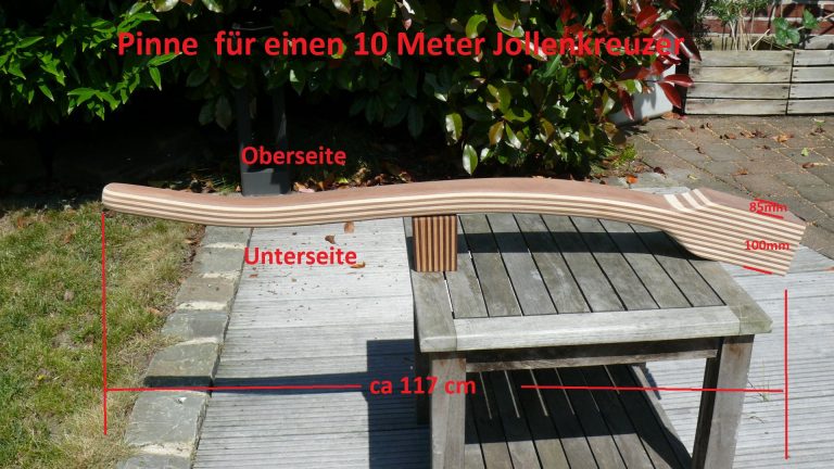 Diese Pinne für einen 10 Meter Jollenkreuzer war eines meiner aufwendigsten Projekte. Unschwer an den Fotos zu erkennen die aussergewöhnliche Aufnahme der Pinne. Der Eigner hat mir dazu eine Schablone zugeschickt.