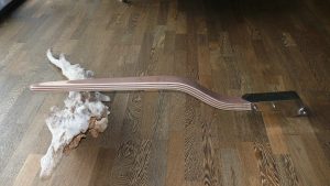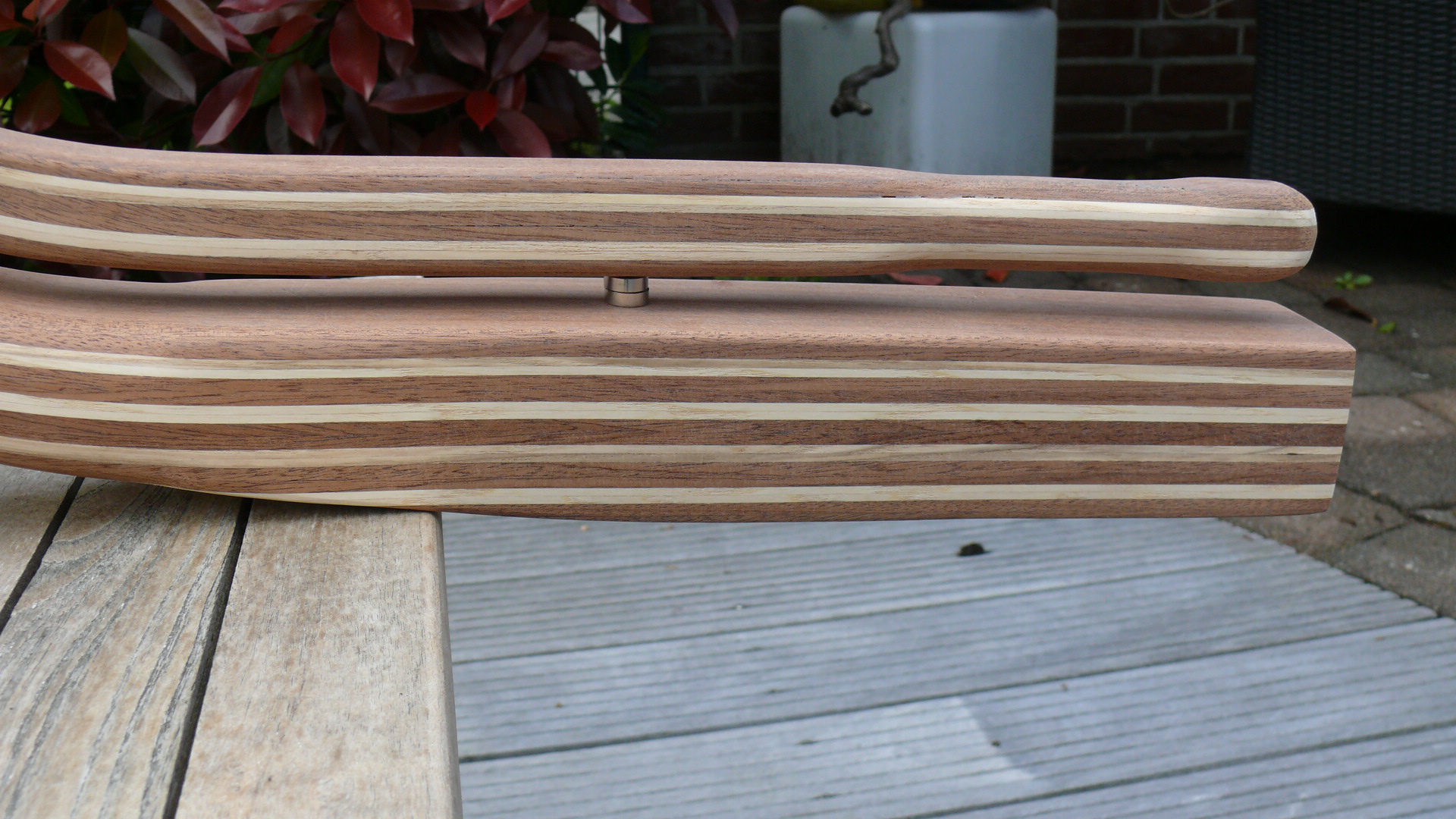 Hier habe ich dem Eigner eine neue Pinne gebaut. Die alte, am Schaft gebrochene Pinne, habe ich restauriert und mit einem Aluvierkantrohr am Schaft verstärkt. Die Altpinne dient nun als Reservepinne.