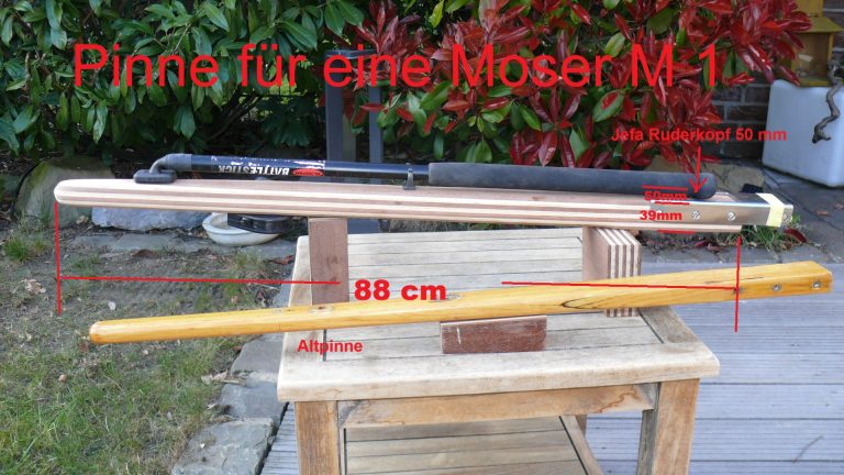 Hinweis zur dieser Moser M 1 Pinne: verbaut ist hier der JEFA-Ruderkopf mit 50 mm Breite