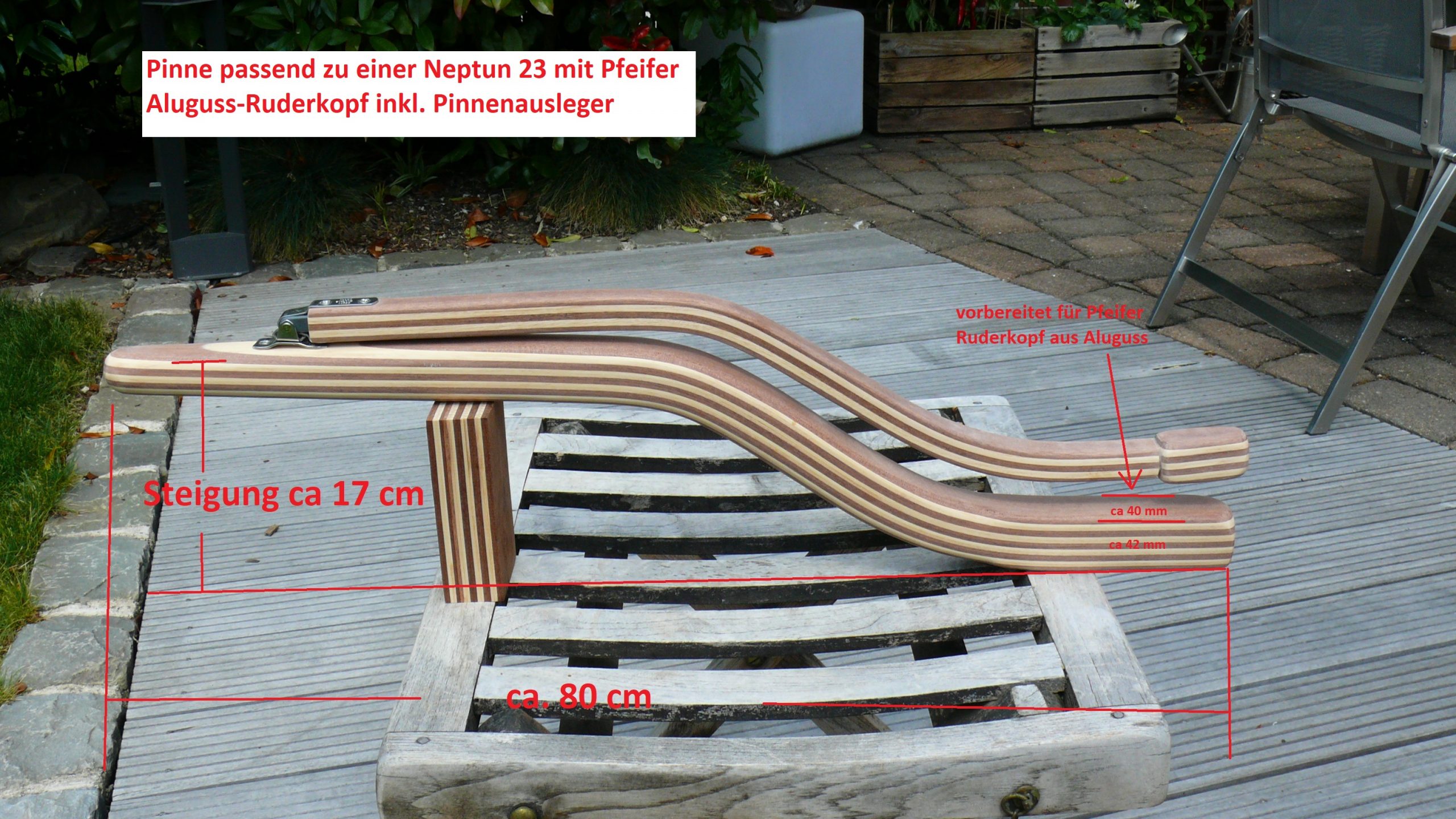 Die hier gezeigte Neptun 29 Pinne ist mit dem Pfeifer Alugssruderkopf ausgestattet. Diesen Ruderkopf habe ich als Anpassmuster in meiner Werkstatt liegen!