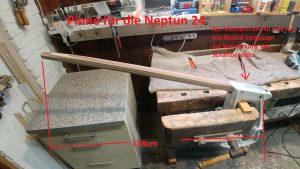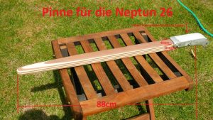 Neptun 23, hier in der Version mit Pfeifer Alugussruderkopf mit exakt 40 mm zwischen den Flanken und sogar mit passendem Ausleger