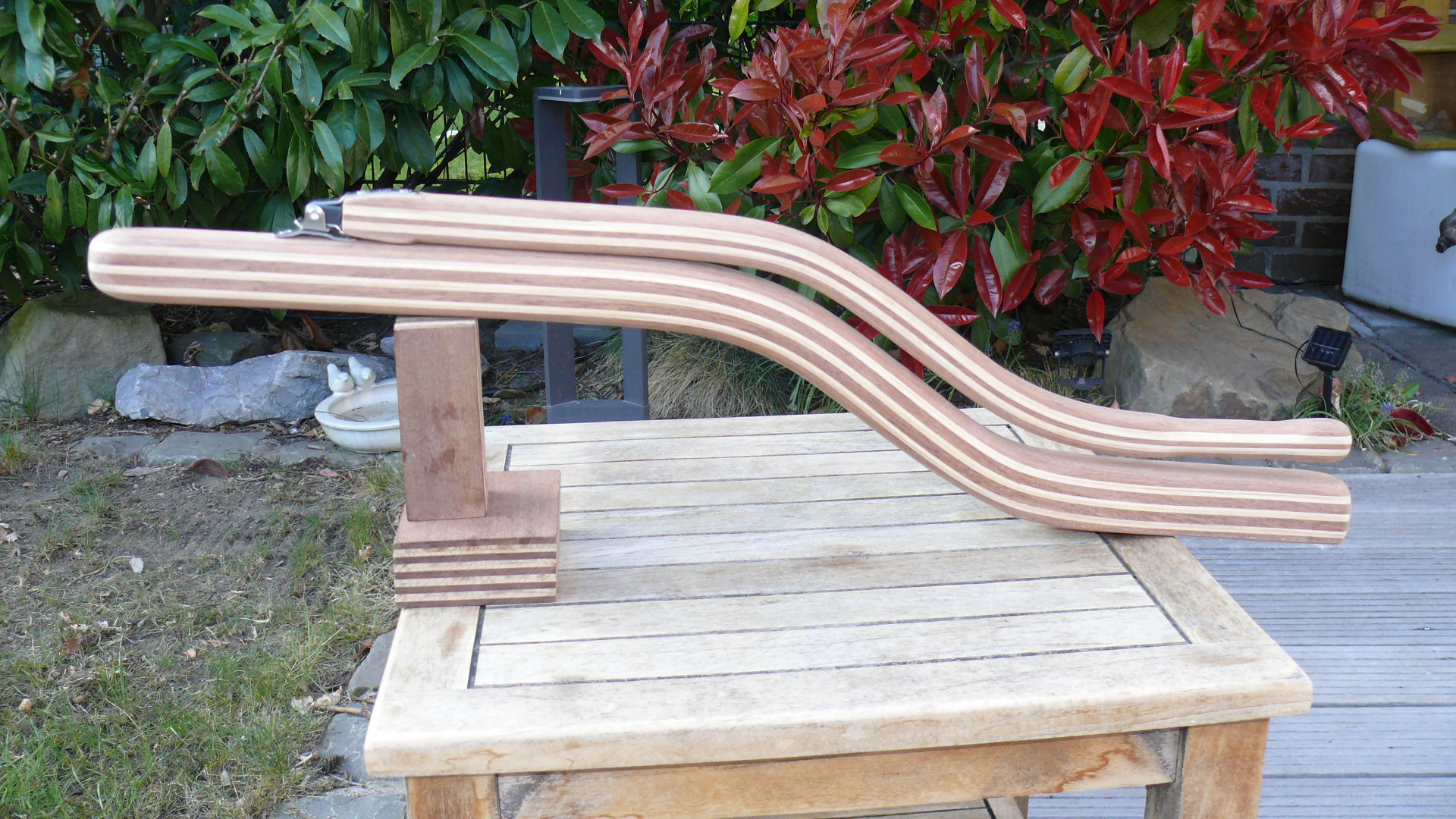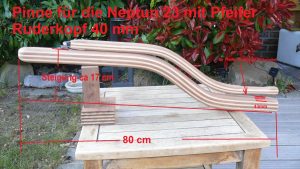Neptun 26 hier in zwei Versionen: gerade oder mit langem S-Schlag, beide mit Pfeifer Aluguss-Ruderkopf 40 mm. Dieser Ruderkopf liegt bei mir in der Werkstatt als Anpassmuster!