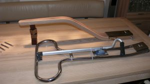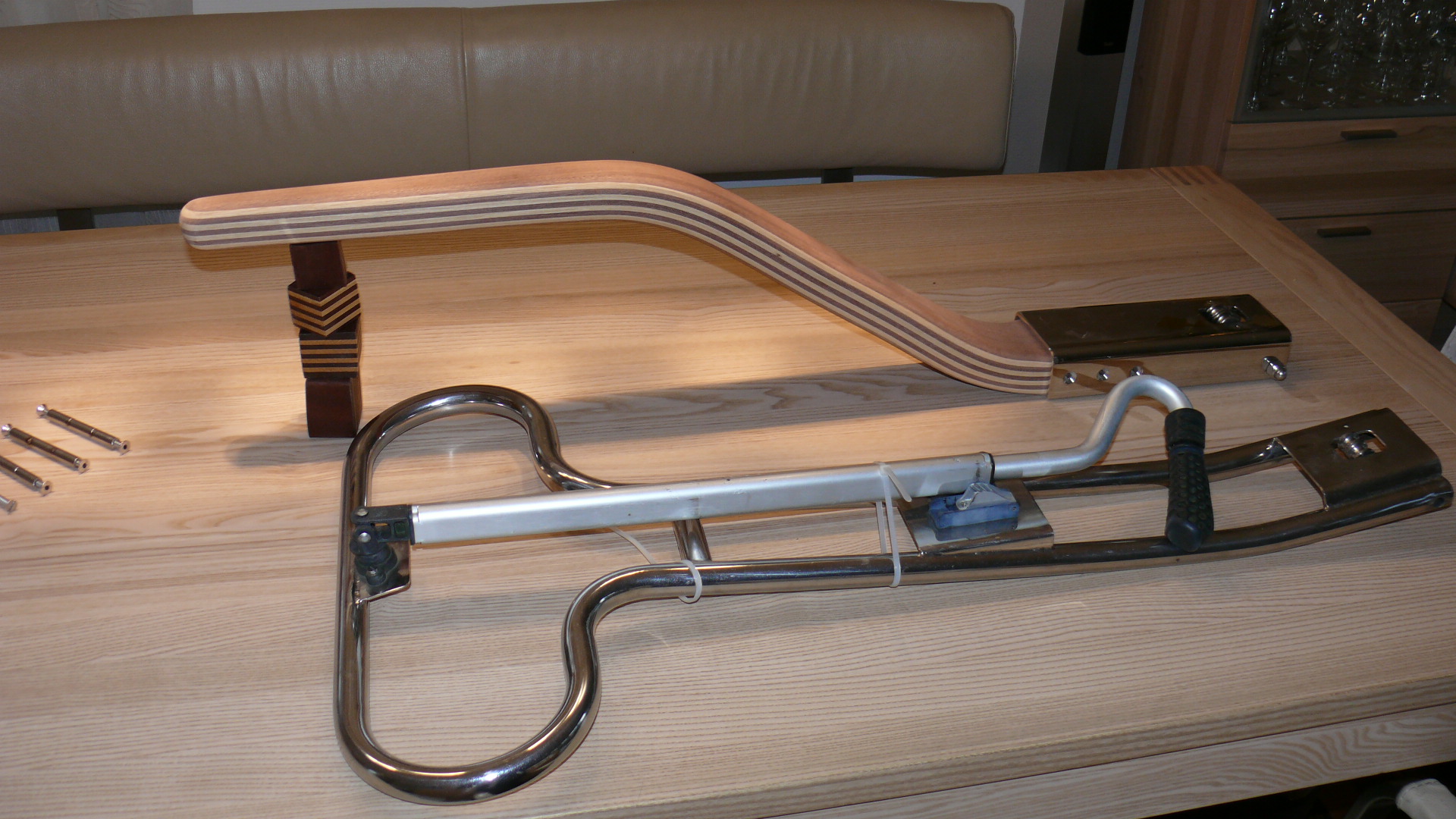 Hinweis zur Pegaz 31 Pinne: Der Eigner wollte die viel zu große, kalte Edelstahlpinne gegen eine schöne lamellierte Holzpinne tauschen. Da das Boot ein aufholbares Ruderblatt hat, musste der Ruderkopf entsprechend von einem Edelstahlschlosser (Edelstahl Haese) mit zwei integrierten Rollen gebaut werden. Das hat die Firma Haese in Perfektion umgesetzt.