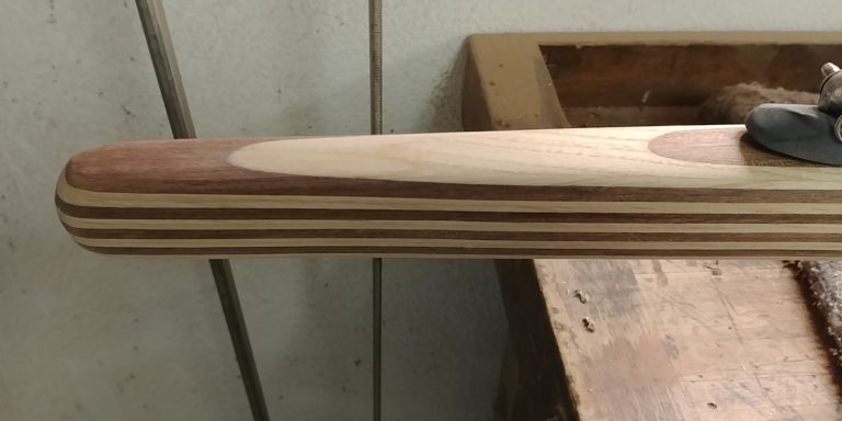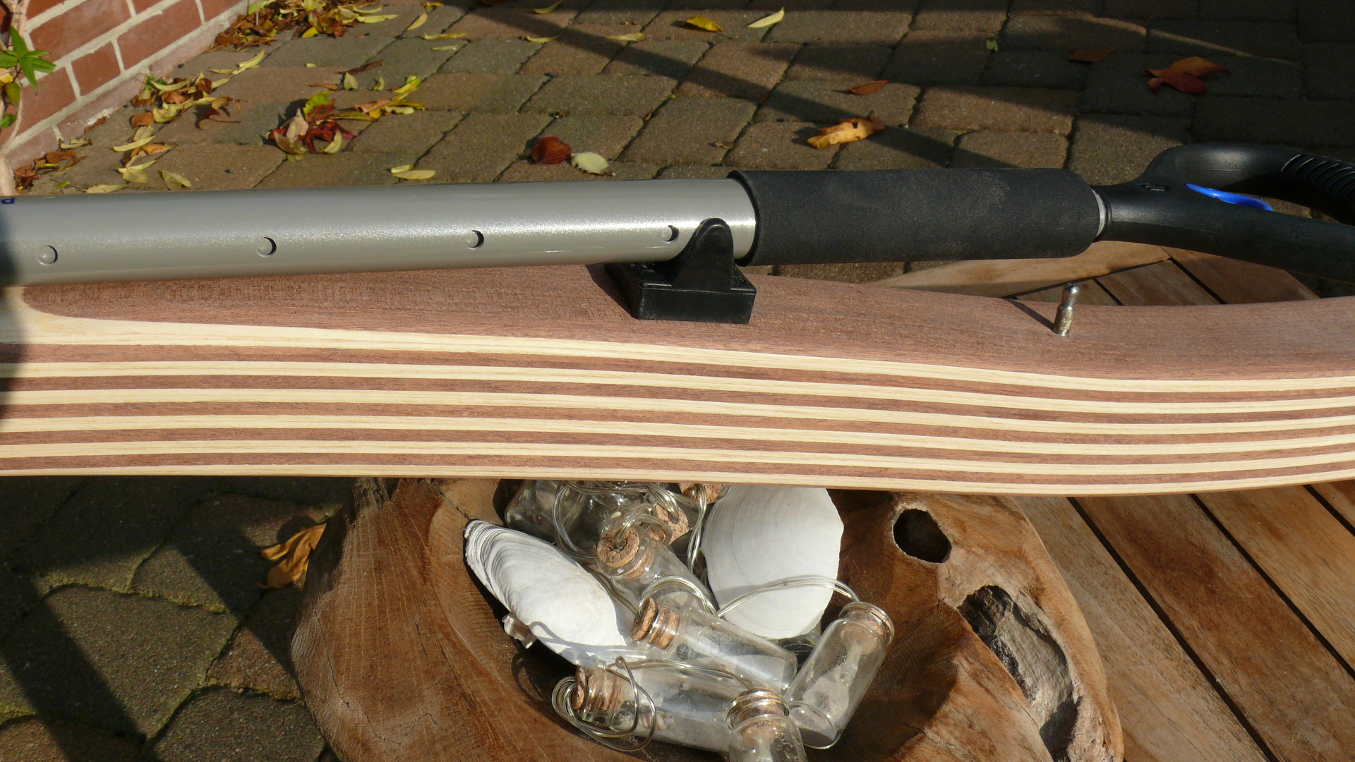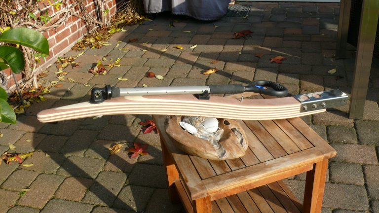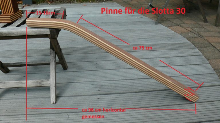 Slotta 30. Hier habe ich in der Vergangenheit Pinnen in zwei verschiedene Geometrien gebaut: mit abgenicktem Griff und s-förmig. Bei den Slotta Booten ist meistens der JEFA-Ruderkopf mit 62 mm verbaut. Dieser ist hier auch sichtbar.