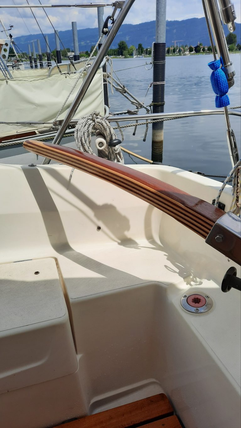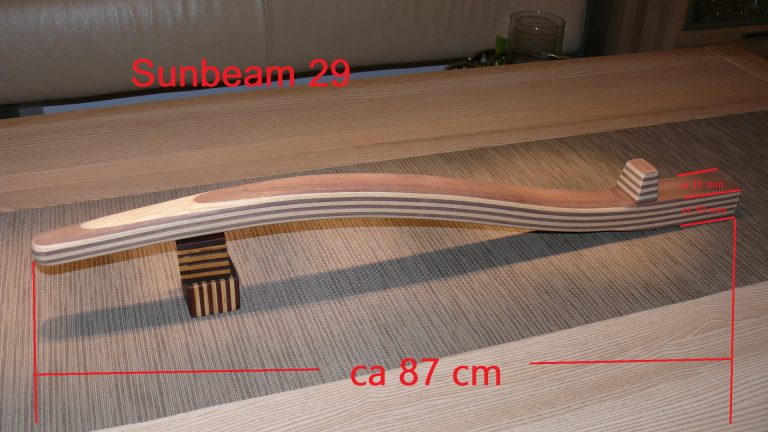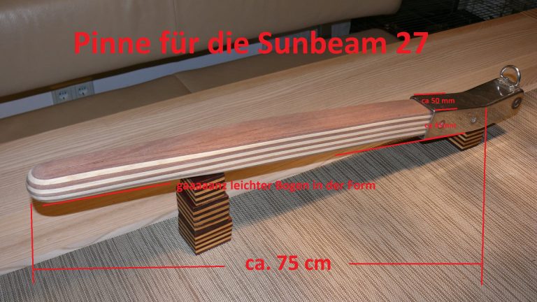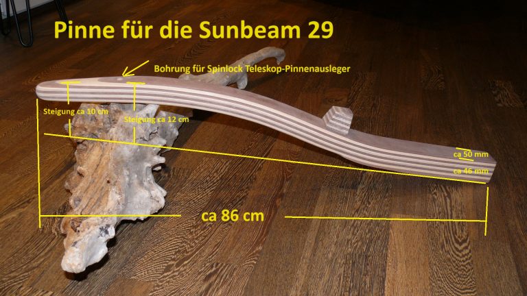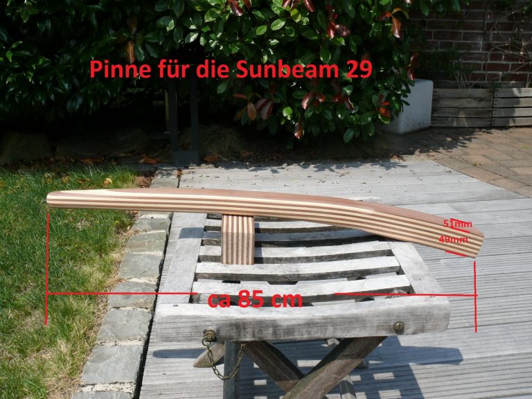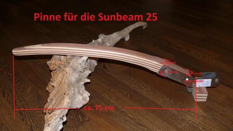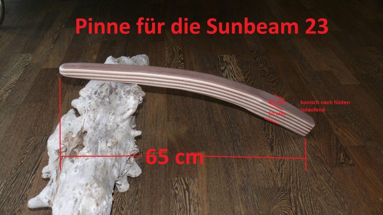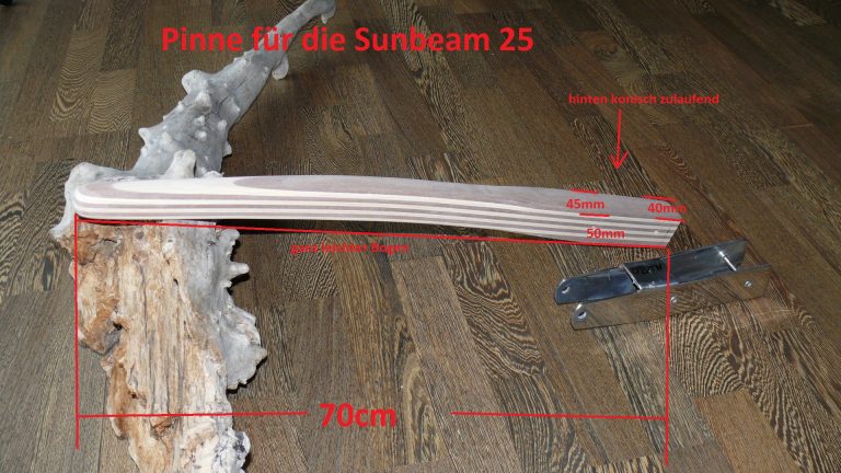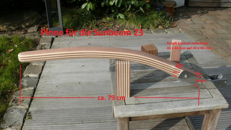 Wichtiger Hinweis zur Sunbeam 25: Aus Erfahrung kann ich sagen, jeder Ruderkopf bei der Sunbeam 25 ist „handgeklöppelt“. Jeder Ruderkopf hat unterschiedliche Maße. Oft, aber nicht immer, sind die Ruderköpfe nach hinten hin konisch zulaufend. Ich empfehle jedem Eigner eines Sunbeam Bootes mir den Ruderkopf zuzusenden, damit ich die Pinne exakt anpassen kann.