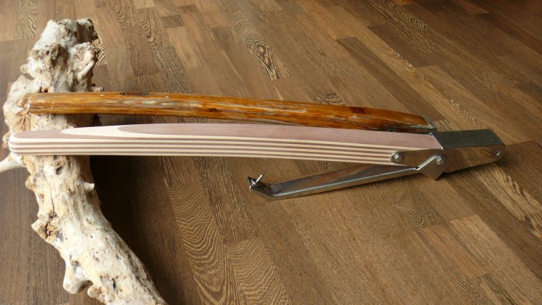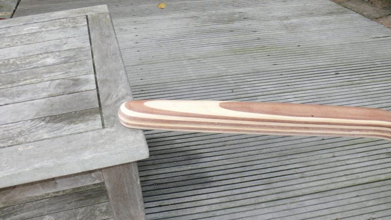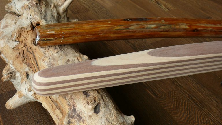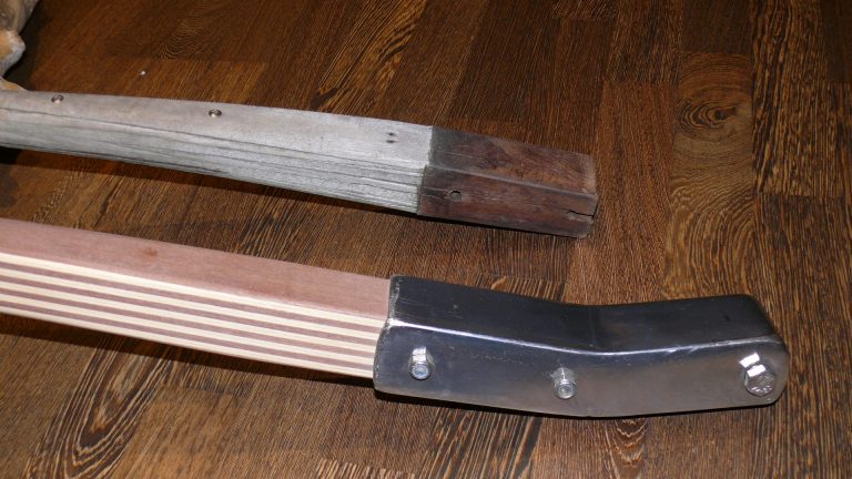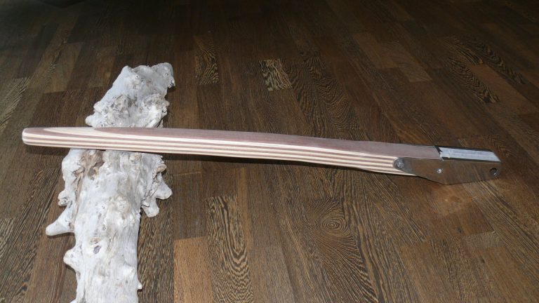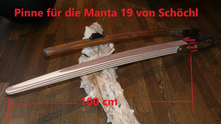 Hier gibt es verschiedene Ruderkopfformen, fast gerade oder aber geknickt gebaut. Entsprechend ist die Pinne dann mal nur leicht gebogen und mal bananenförmig gebogen.