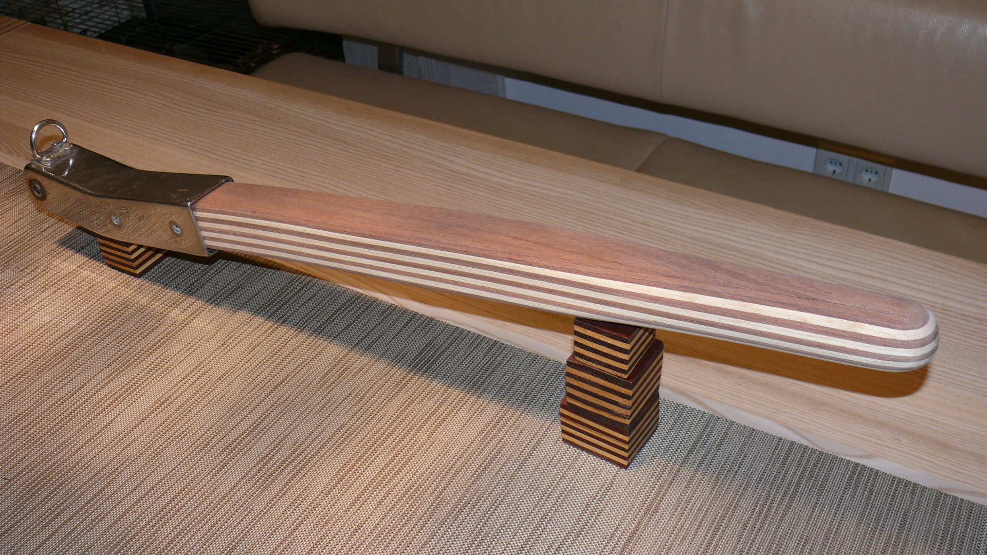 Wichtig: Aus Erfahrung kann ich sagen, jeder Ruderkopf bei jedem Boottyp der Sunbeam Werft ist „handgeklöppelt“. Jeder Ruderkopf hat unterschiedliche Maße. Oft, aber nicht immer, sind die Ruderköpfe nach hinten hin konisch zulaufend. Ich empfehle jedem Eigner eines Sunbeam Bootes mir den Ruderkopf zuzusenden, damit ich die Pinne exakt anpassen kann.