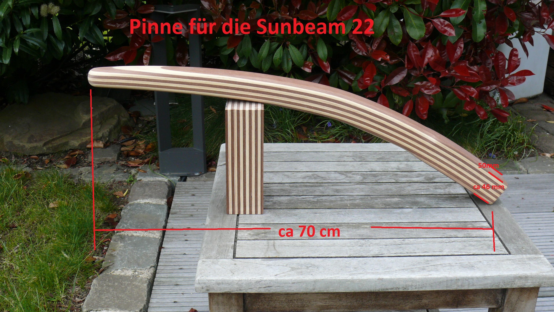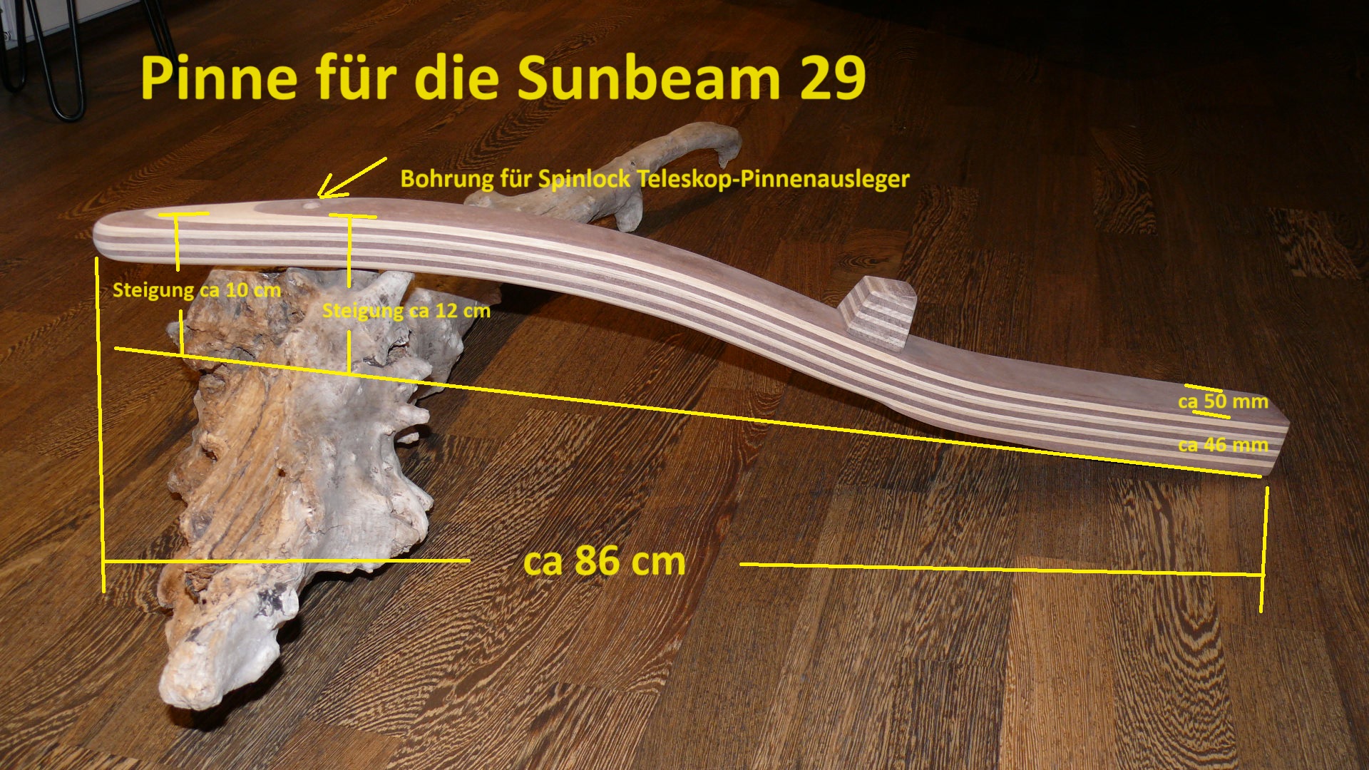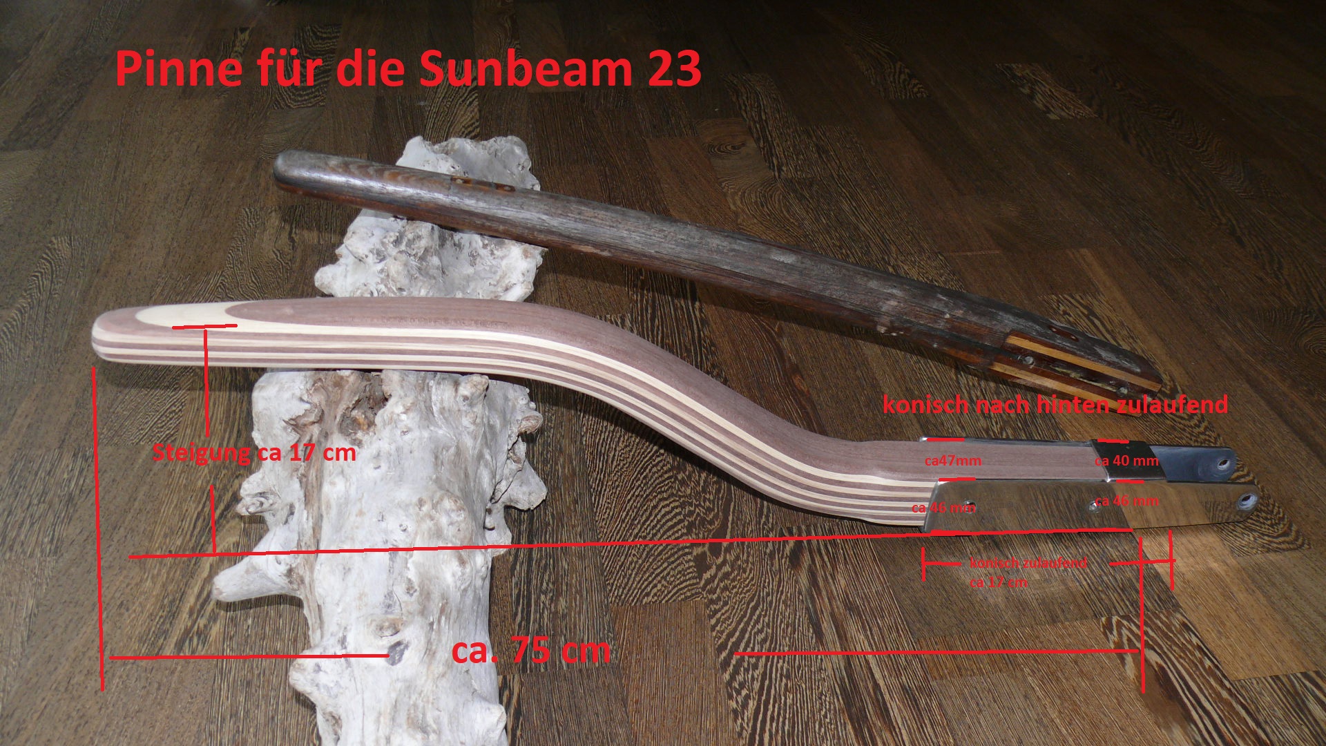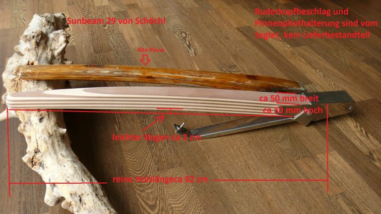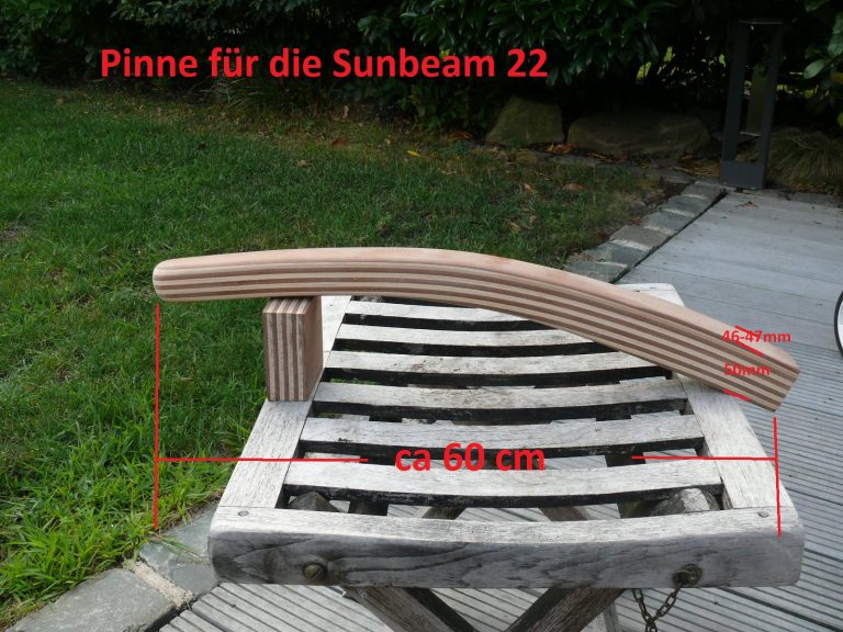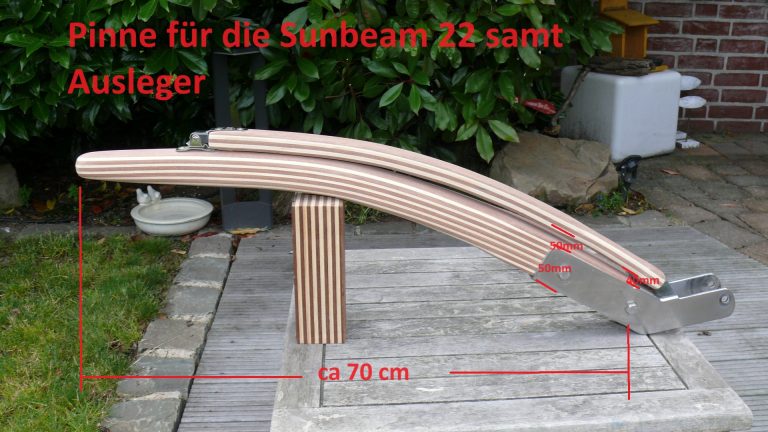 Wichtiger Hinweis zur Sunbeam 22: Aus Erfahrung kann ich sagen, jeder Ruderkopf bei der Sunbeam 22 ist „handgeklöppelt“. Jeder Ruderkopf hat unterschiedliche Maße. Oft, aber nicht immer, sind die Ruderköpfe nach hinten hin konisch zulaufend. Ich empfehle jedem Eigner eines Sunbeam Bootes mir den Ruderkopf zuzusenden, damit ich die Pinne exakt anpassen kann.