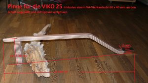 Wichtiger Hinweis zu den Viko / Deltania Ruderanlagen: Bei diesen Booten sind sehr oft baugleiche Ruderanlagen verbaut. Diese Ruderanlagen haben am Ende ein u-förmiges Aufnahmeprofil mit einem Bolzen, der quer durch die Pinne geht. An diesem Bolzen sind die Pinnen extrem bruchgefährdet, bei zu starkem Auflehnen spalten sie sich rund um den Bolzen auf. Ausserdem ist oft an der Vorderkante des U-Profils ein aufrecht stehendes Blech angeschweißt, welches die Holzpinne an der Unterkante permantent beschädigt. Das Ergebnis bei der Serienpinne ist ein schneller Bruch. Um dieses Risiko auszuschließen, habe ich in der Vergangenheit bei fast jeder Viko-Deltania-Pinne hinten an Schaft ein 60 x 40 mm VA-Vierkantrohr aufgearbeitet und mit Epoxid vergossen. Auf diese Weise kann sich die Pinne beim Auflehnen unmöglich hinten aufspalten. Das Aufarbeiten des Vierkantrohrs berechne ich mit € 45.- Aufpreis.