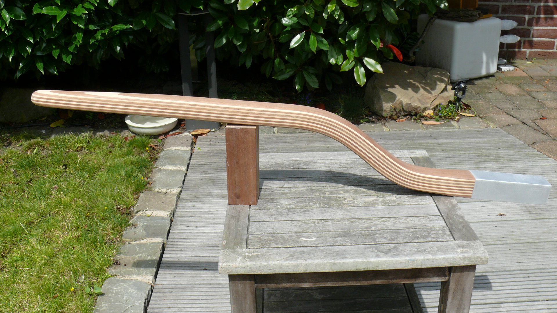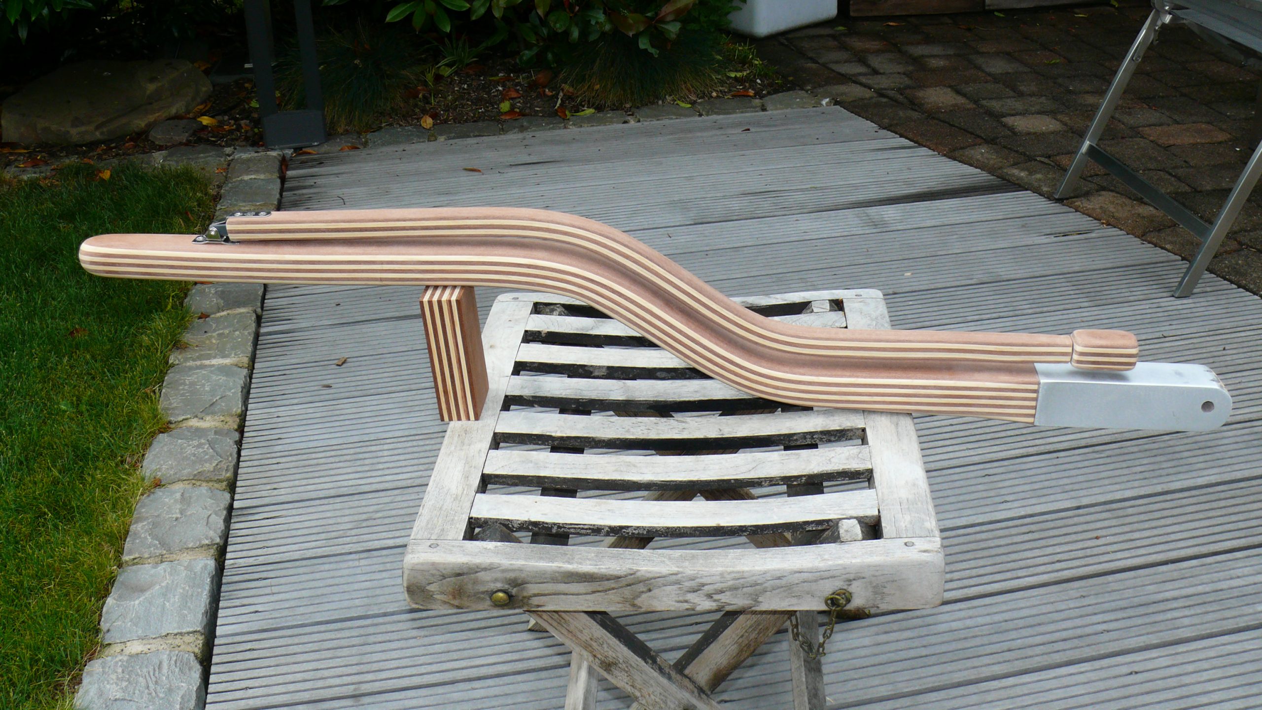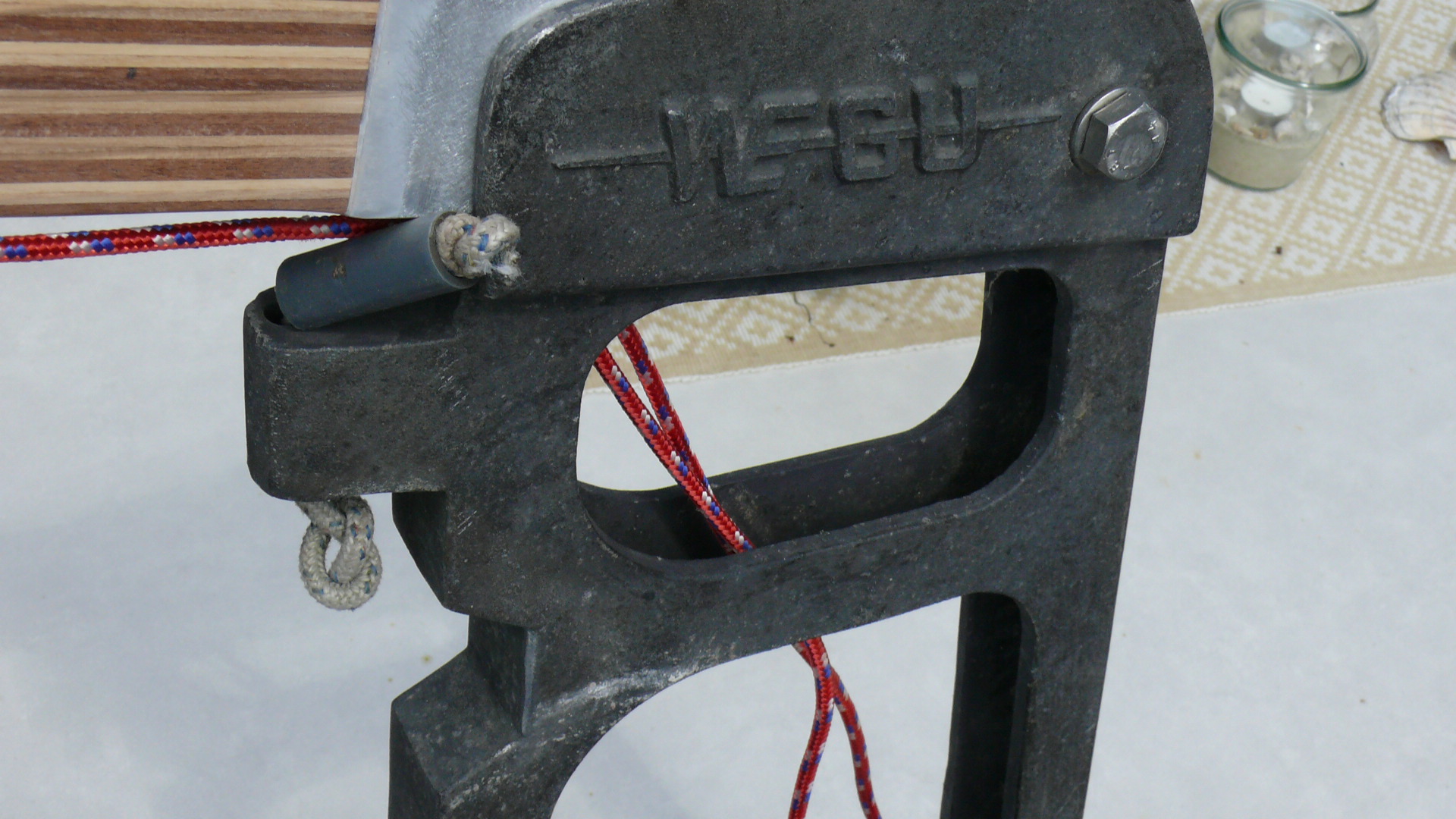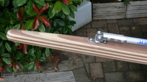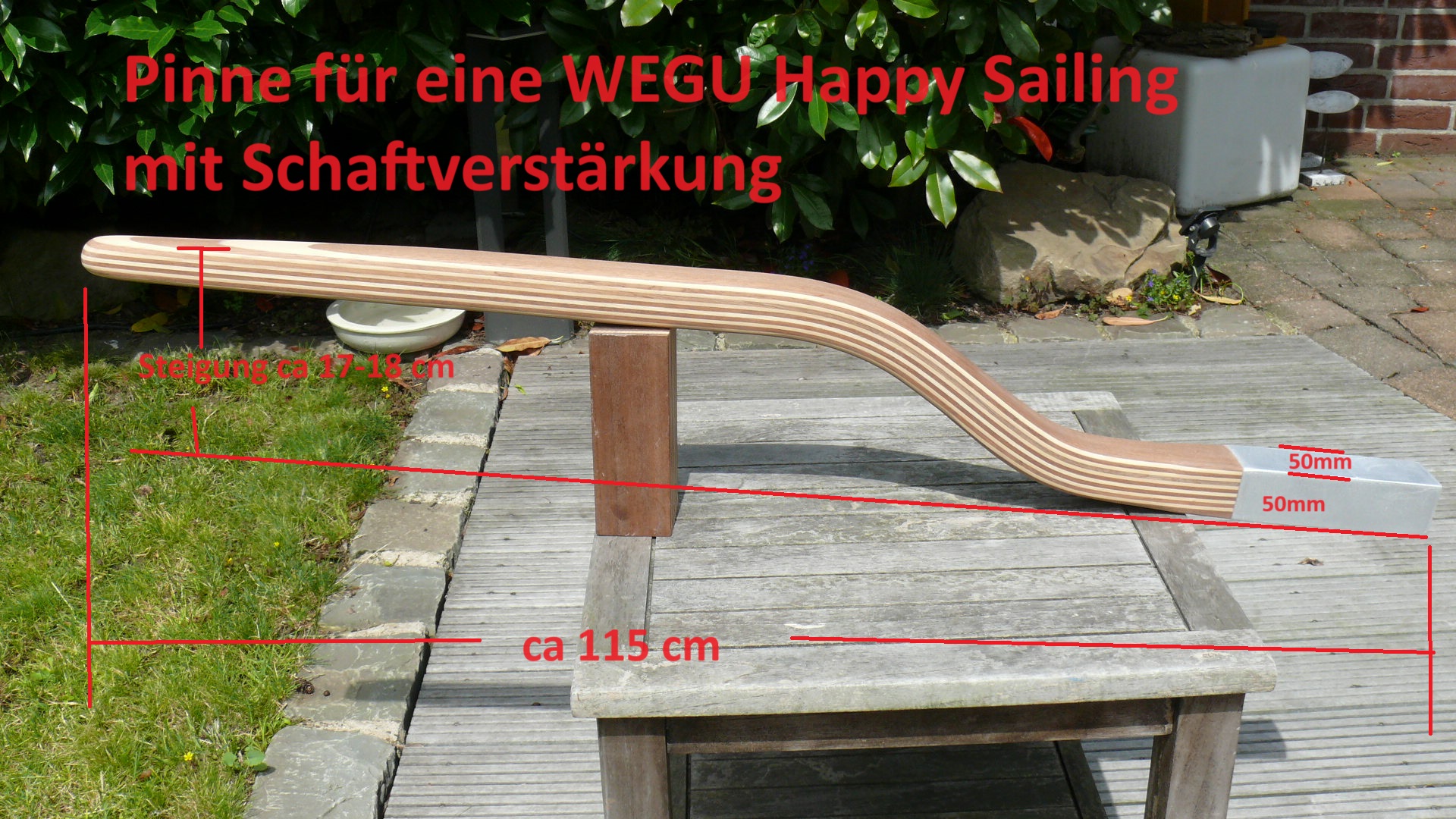 Hinweis zur Wegu Happy Sailing: Bei allen von mir für die Wegu Happy Sailing gebauten Pinnen habe ich den Schaft mit einem 50 x 50 mm Aluvierkantrohr verstärkt. Dieses Alurohr wurde von mir flächenbündig auf den Schaft gearbeitet, mit Epoxid vergossen und sauber verschliffen. Dadurch ist der Schaft im Bereich des Bolzens gegen Aufspalten perfekt geschützt. Eine sehr sinnvolle Lösung. Das Aufarbeiten des Aluvierkantrohrs berechne ich immer mit € 45.- zusätzlich, siehe auch unter Preise.