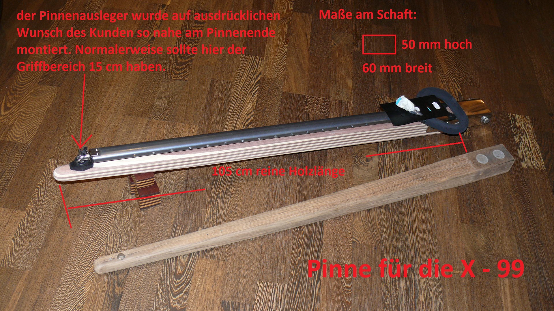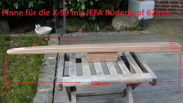 Bei der X 99 ist bisher bei allen von mir ersetzten Pinnen immer der JEFA-Ruderkopf mit 62 mm Breite zwischen den Flanken verbaut gewesen.